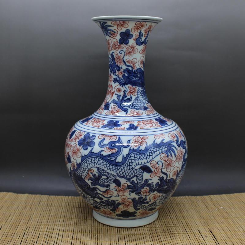 清乾隆年制青花釉里紅穿花龍紋賞瓶 全手工仿古瓷器擺件古玩收藏1入