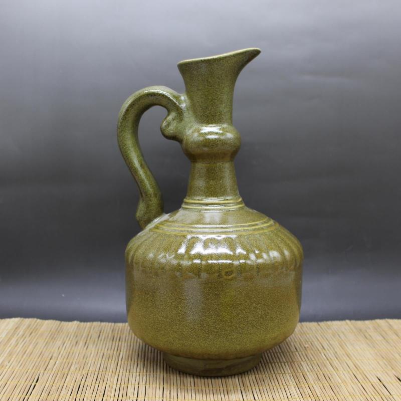 清乾隆茶葉沫釉刻花執壺 純手工仿古瓷器 家居擺件 古董古玩收藏1入