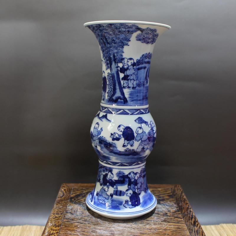 清乾隆年制青花人物故事花觚瓶 仿古景德鎮官窯瓷器擺件 古玩收藏1入