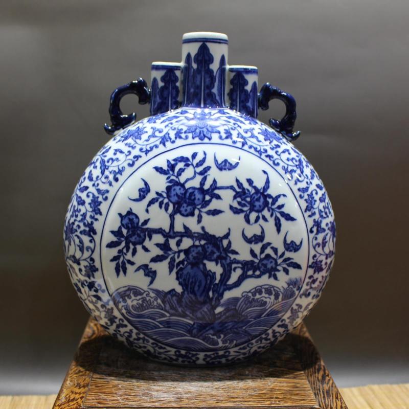 清乾隆青花纏枝九桃紋扁瓶 手繪仿古景德鎮官窯瓷器 古玩擺件收藏1入