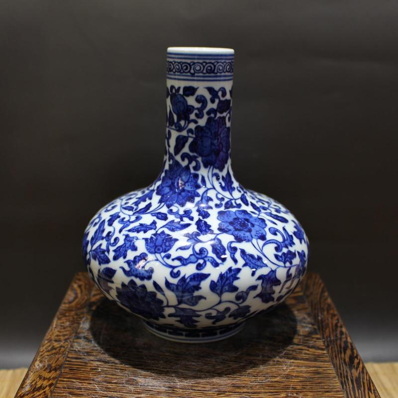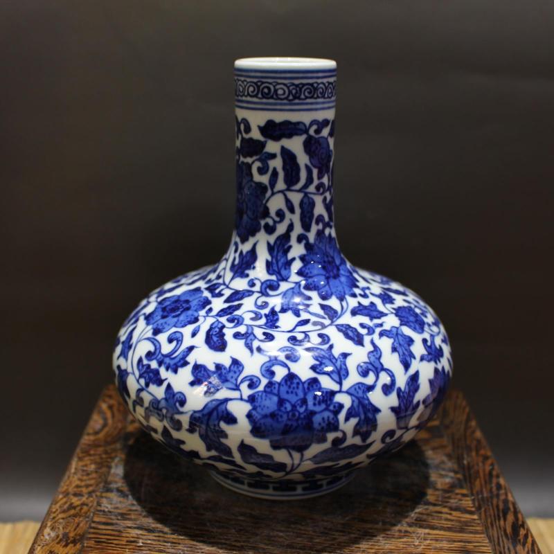 清乾隆青花纏枝蓮紋扁肚瓶 手工仿古景德鎮官窯瓷器擺件 古玩收藏1入