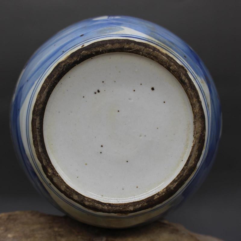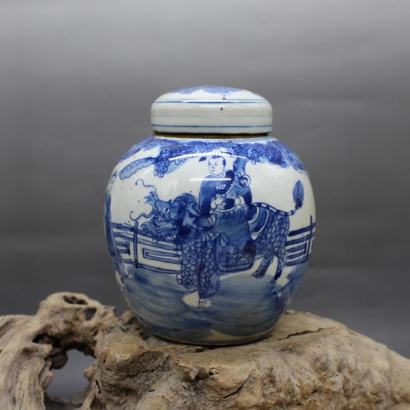 清康熙年制青花人物麒麟送子茶葉蓋罐 仿古出土瓷器 家居擺件老貨1入