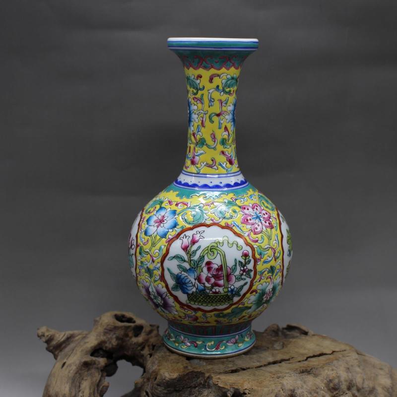 清乾隆款粉彩四季花紋賞瓶 仿古工藝瓷器家居擺件 古董古玩收藏1入