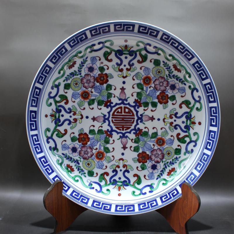 清雍正青花斗彩富貴長壽大盤 全手工精品家居仿古擺件瓷器收藏1入