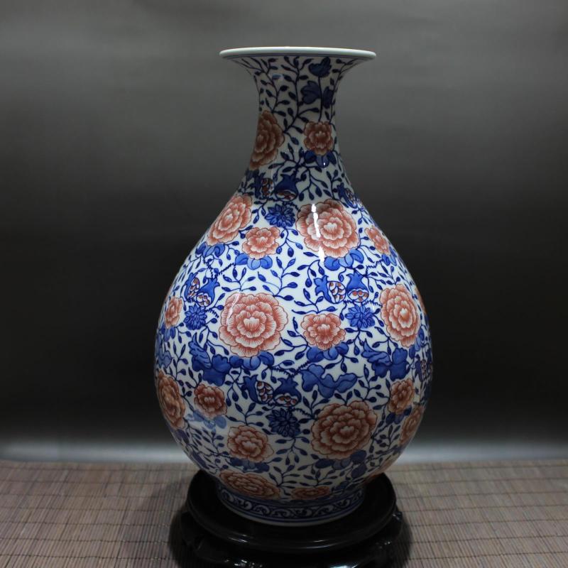 清乾隆景德鎮民仿官窯青花釉里紅萬花玉壺春瓶 家居擺件瓷器收藏1入