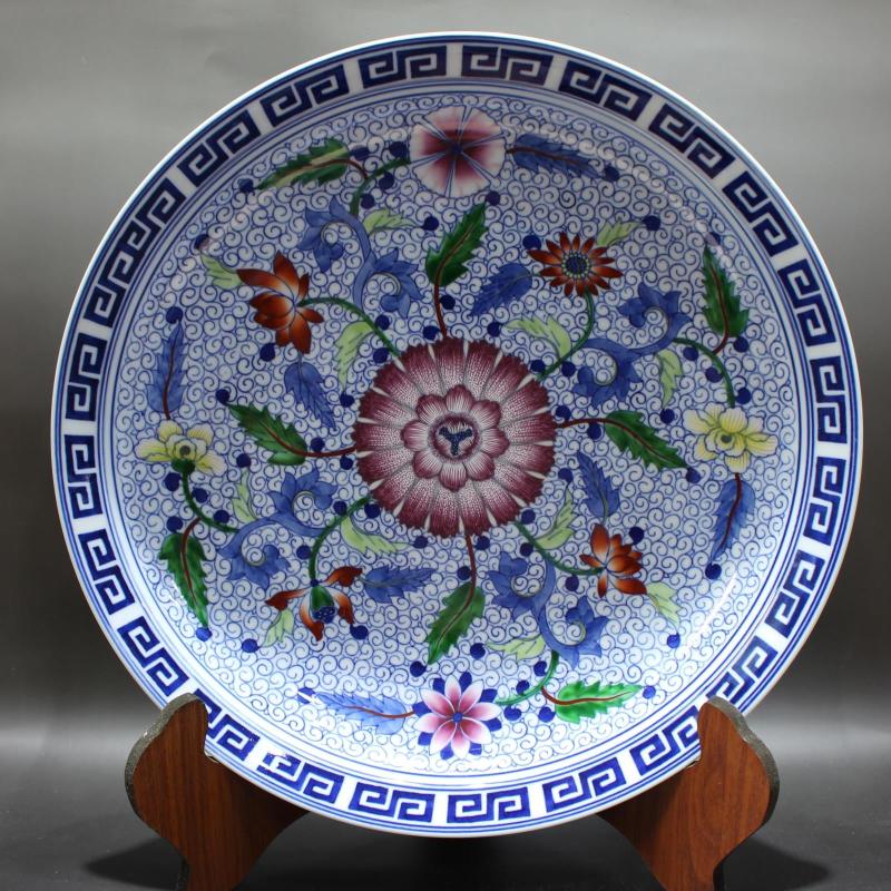 清雍正青花斗彩五福花紋大盤 全手工精品家居仿古擺件瓷器收藏1入