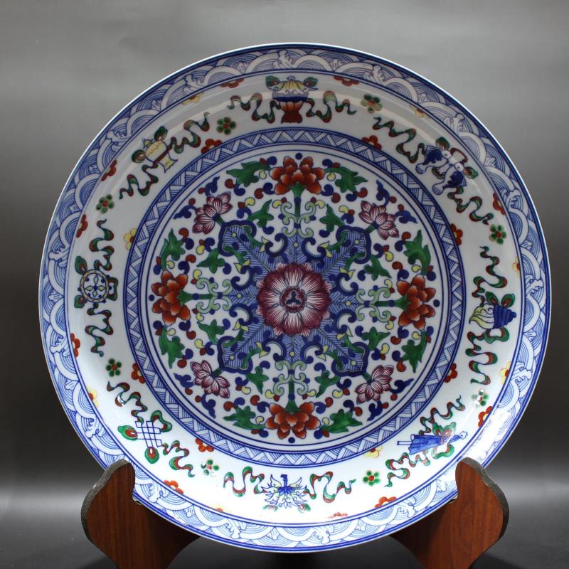 清雍正青花斗彩花紋八寶大盤 全手工精品家居仿古擺件瓷器收藏1入