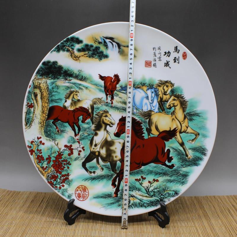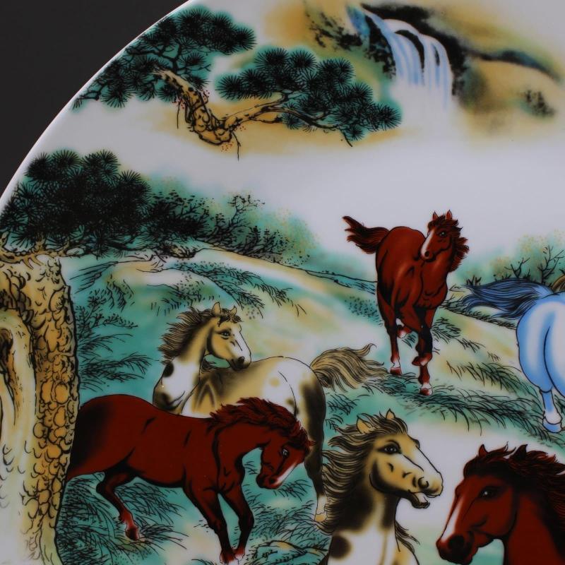 清乾隆五彩八駿圖大盤 仿古貼花工藝品家居擺件瓷器 大盤擺件收藏1入