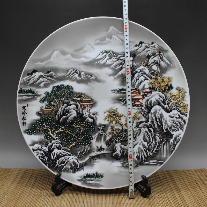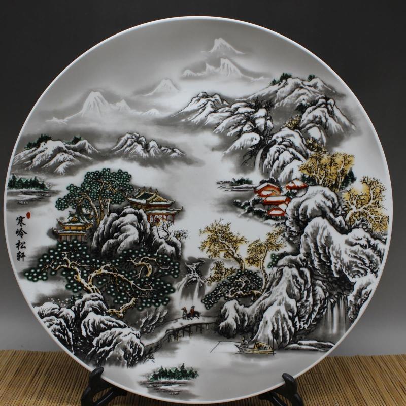 清乾隆淺降彩雪景大盤 仿古貼花工藝品家居擺件瓷器 大盤擺件收藏1入