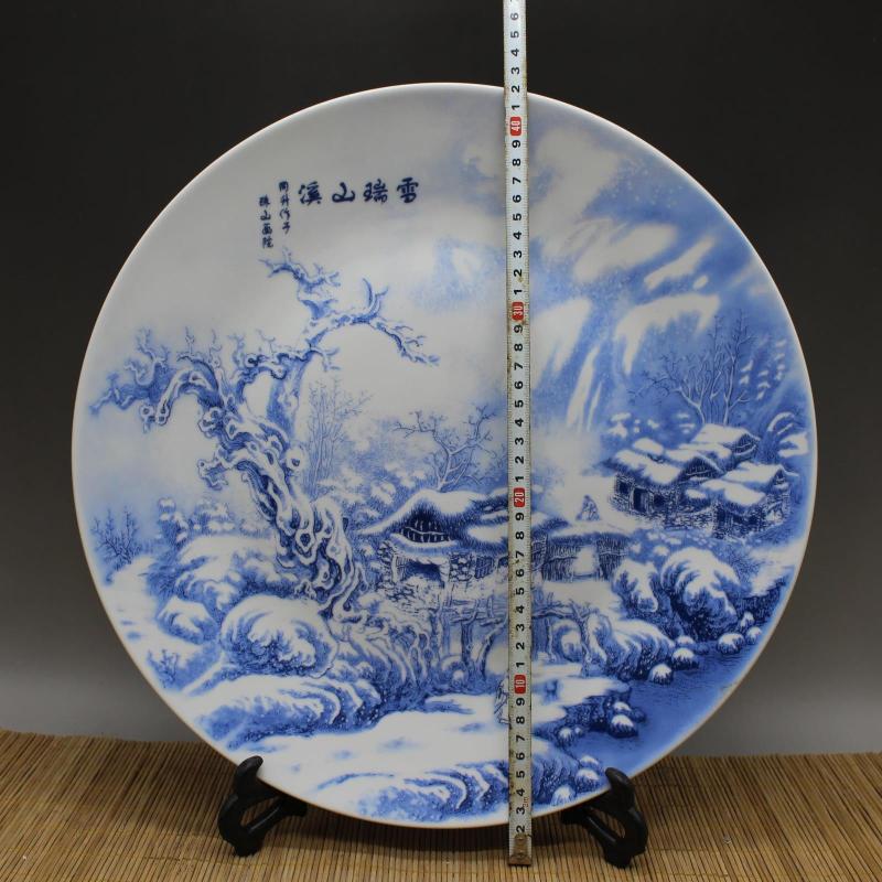 清乾隆山水雪景大盤 仿古貼花工藝品家居擺件瓷器 大盤擺件收藏1入