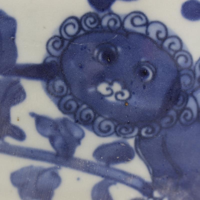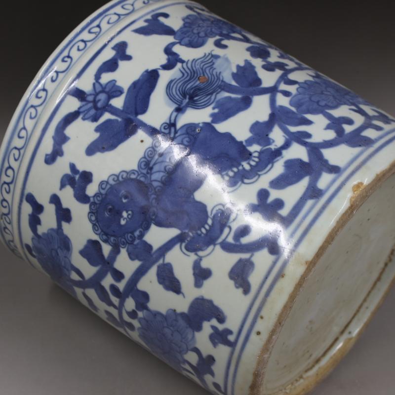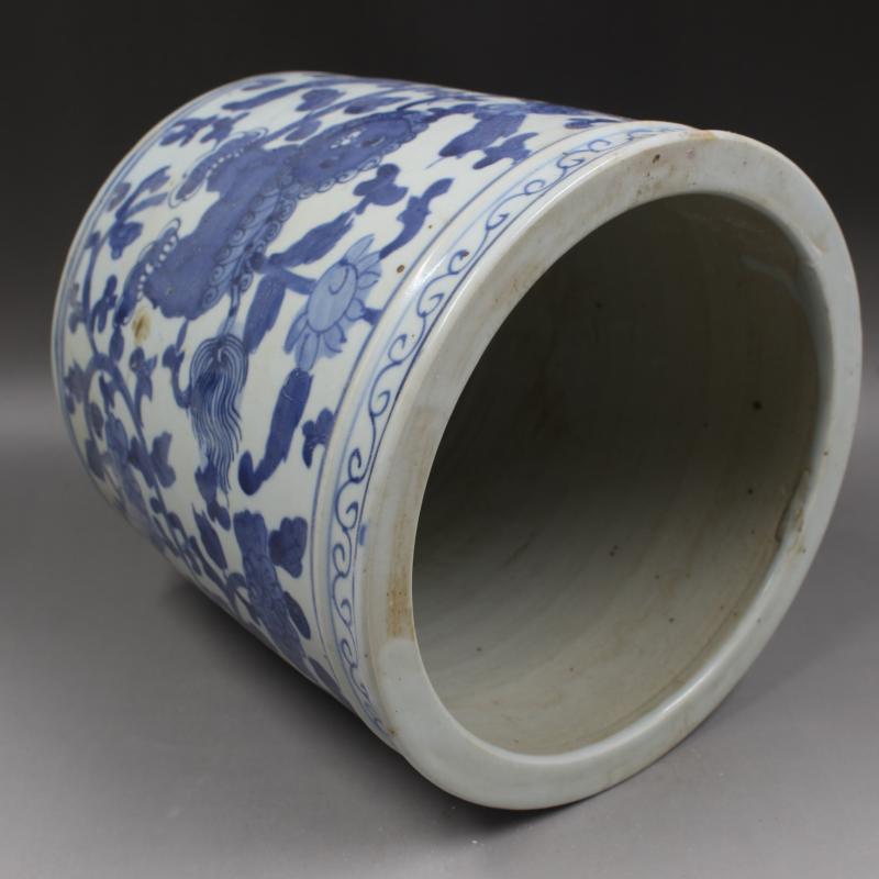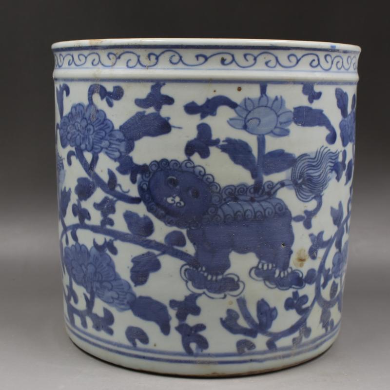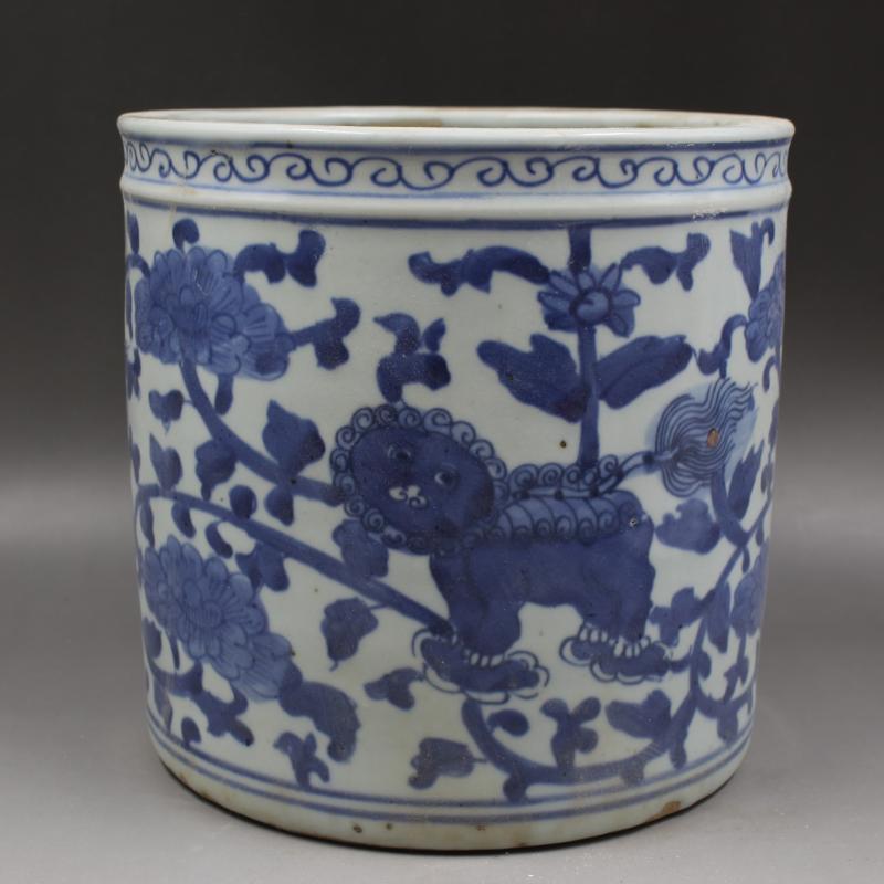 大清同治青花穿花獅紋筆筒筆海手工仿古文房用品擺件瓷器古董收藏1入