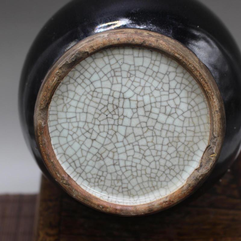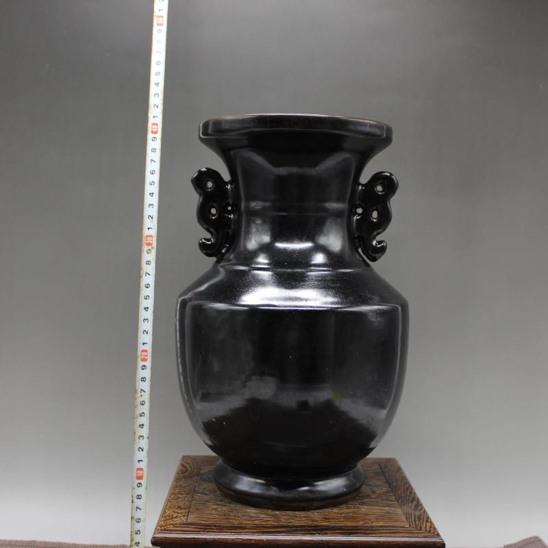 清乾隆烏金釉蝶耳花瓶賞瓶 仿古瓷器 民間收藏品家居擺件古玩瓷器1入