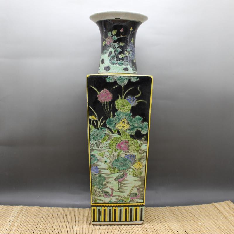清康熙黑地粉彩四季花鳥天圓地方花瓶 老貨收藏仿古瓷器擺件古董1入