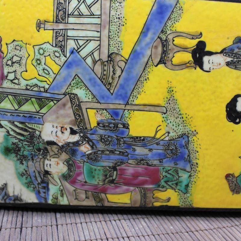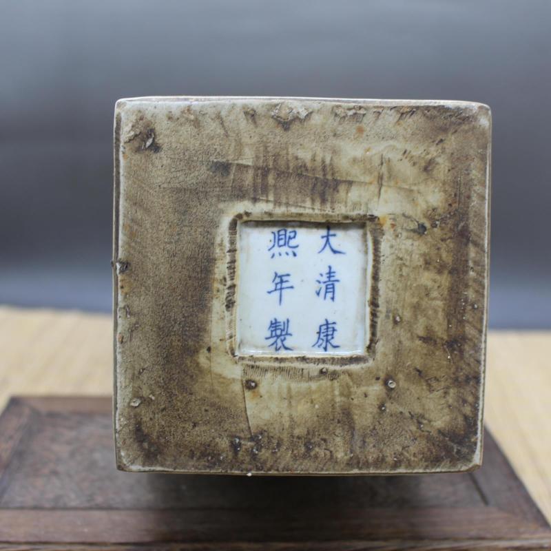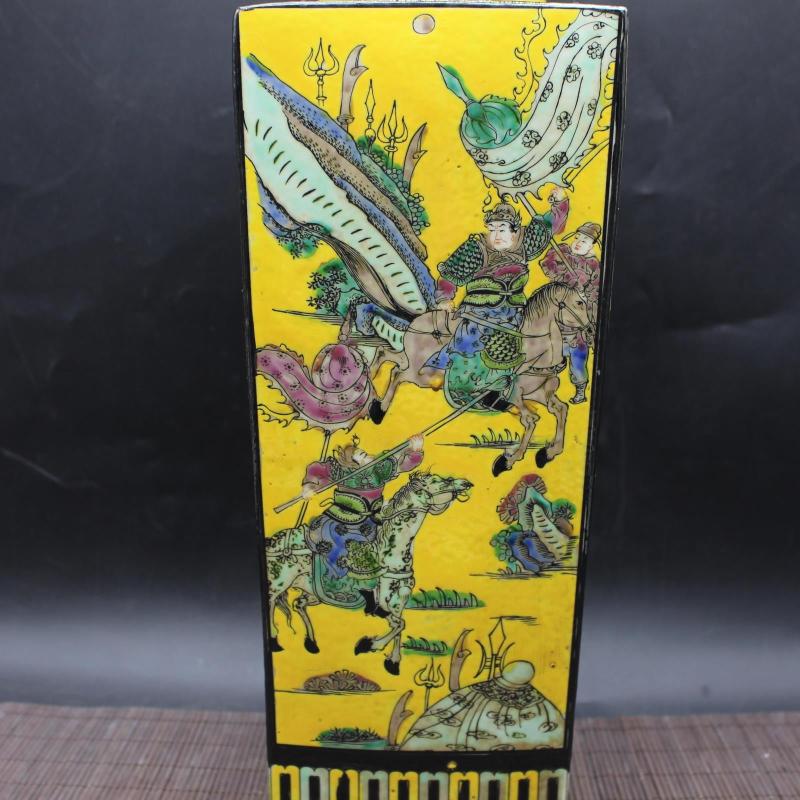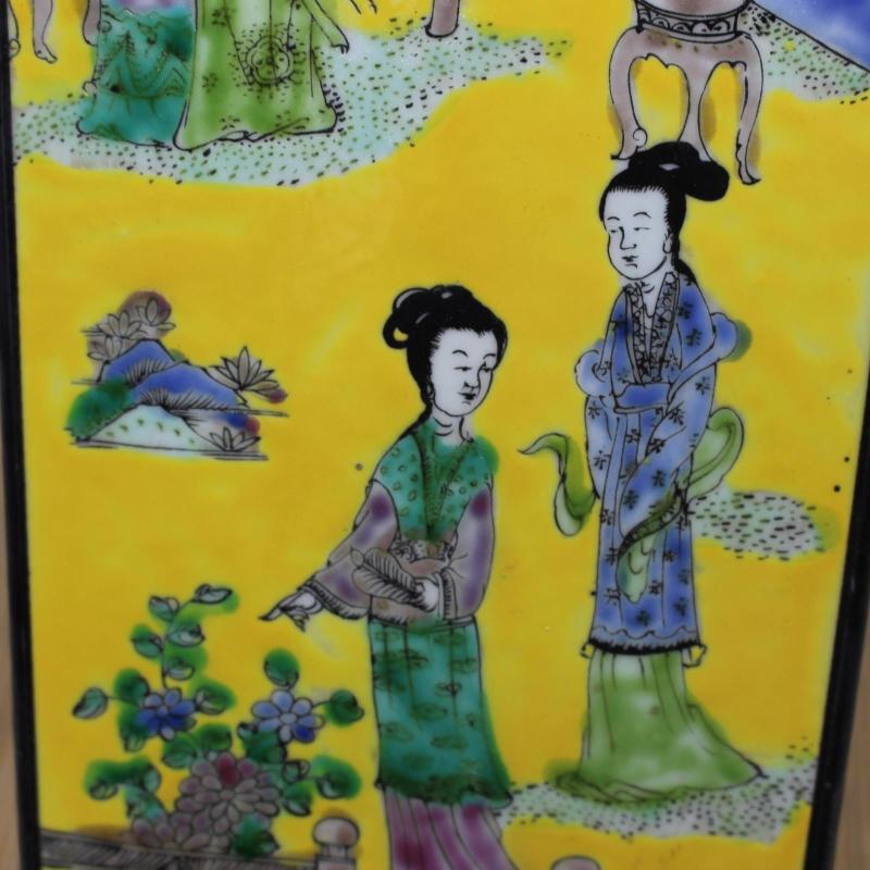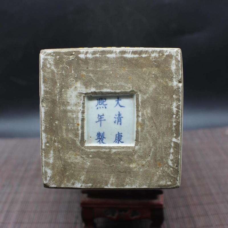 清康熙黃地粉彩人物故事天圓地方花瓶 老貨收藏仿古瓷器擺件古玩1入