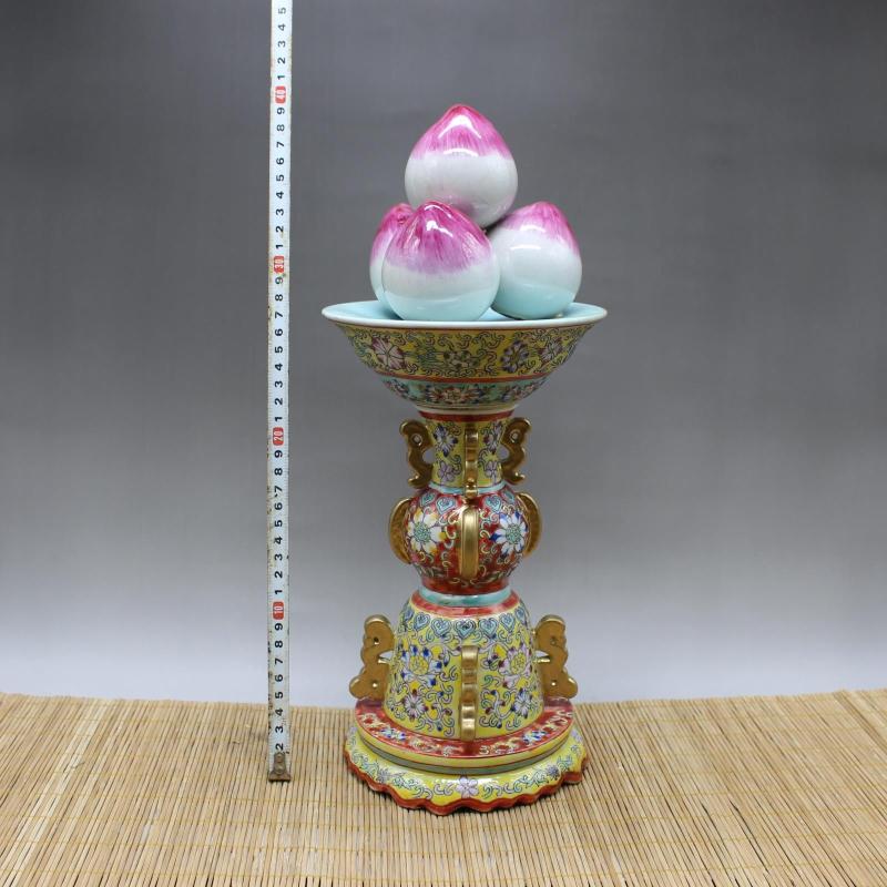 清乾隆年制粉彩祝壽壽桃擺件 家居祭祖祭拜先人瓷器用品 古玩收藏1入