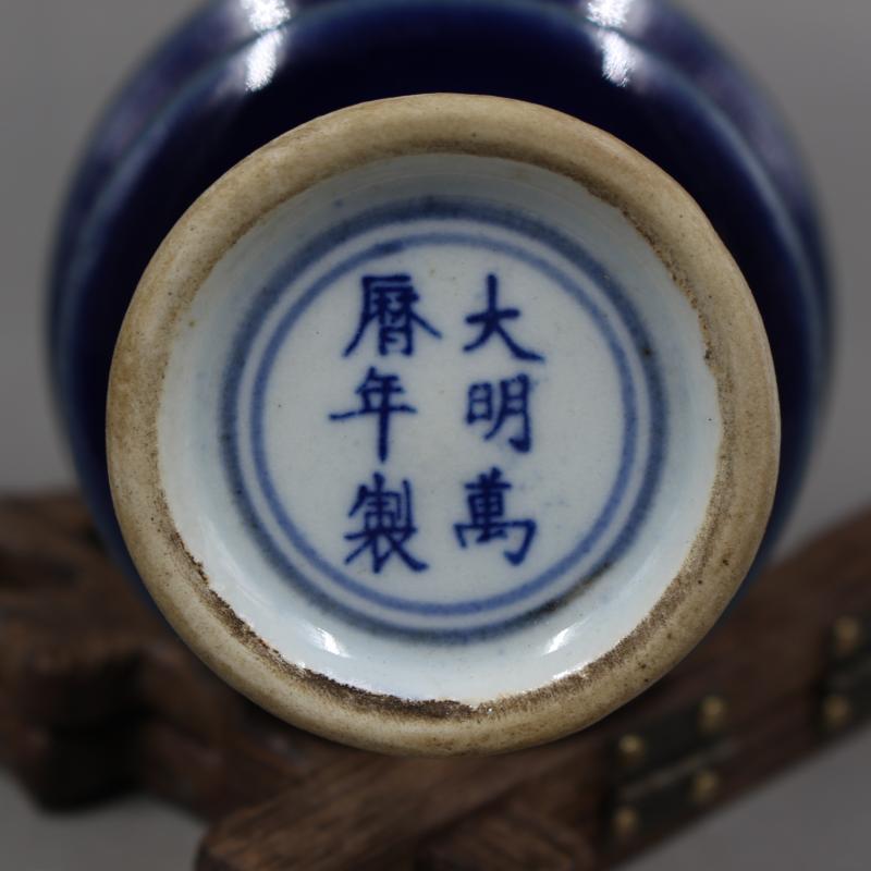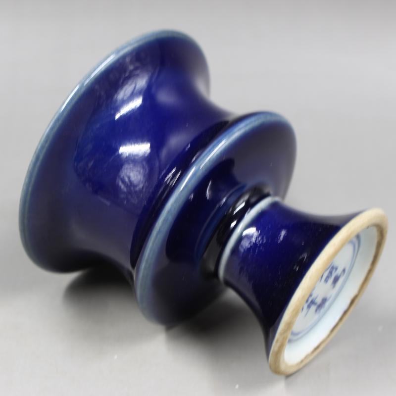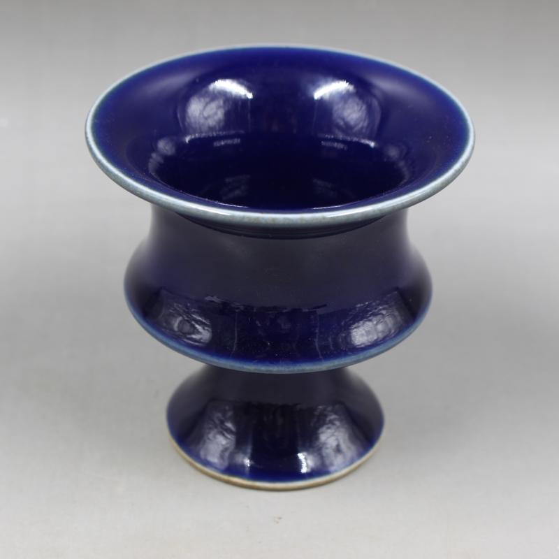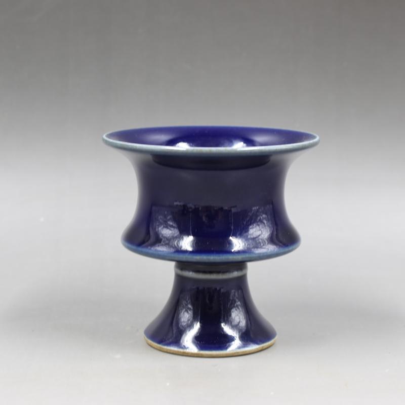 大明萬歷年制單色釉祭藍高足酒杯精品家用仿古瓷器擺件古董古玩1入