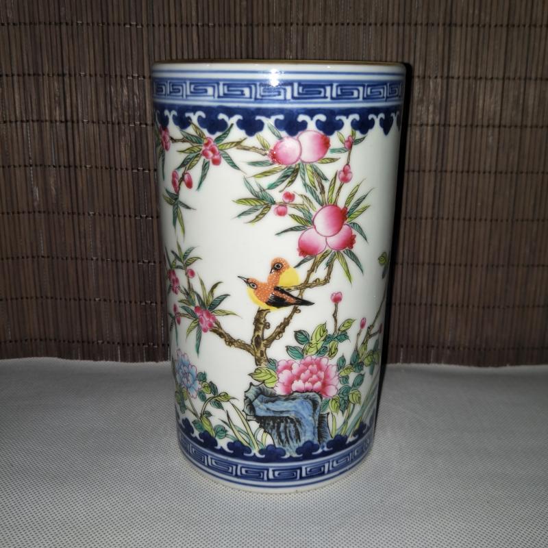 清乾隆青花斗彩描金粉彩花鳥筆筒 手繪仿古瓷器文房擺件古玩收藏1入