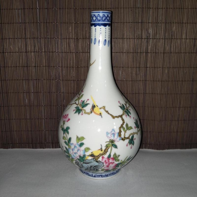 清乾隆青花斗彩描金粉彩花鳥膽瓶 全手工仿古瓷器擺件古玩收藏1入