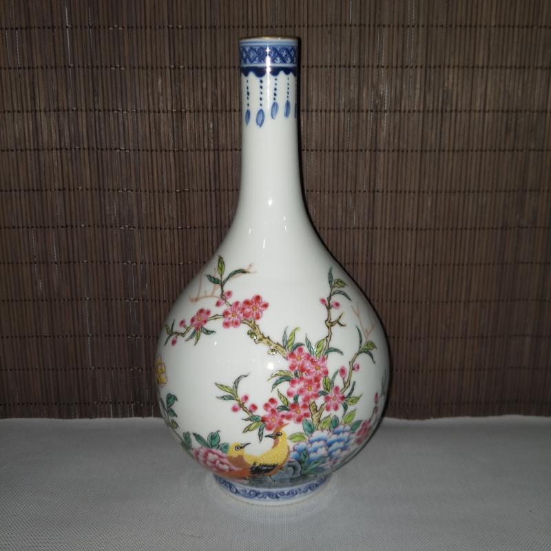 清乾隆青花斗彩描金粉彩牡丹花鳥膽瓶 手工仿古瓷器擺件古玩收藏1入