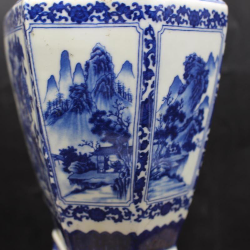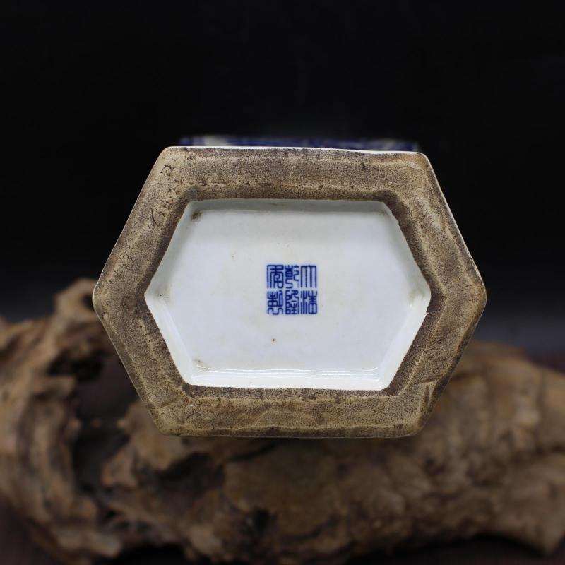 清乾隆年制青花人物花鳥六方賞瓶 仿古工藝出土瓷器 古玩收藏擺件1入