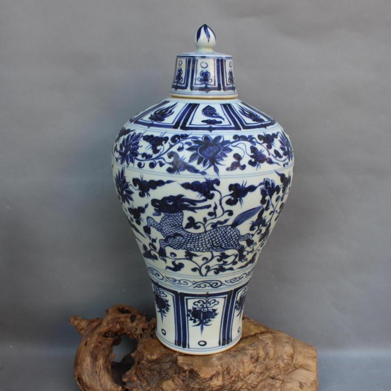 元青花纏枝麒麟紋梅瓶 手工手繪仿古出土老貨瓷器擺件 古董古玩1入