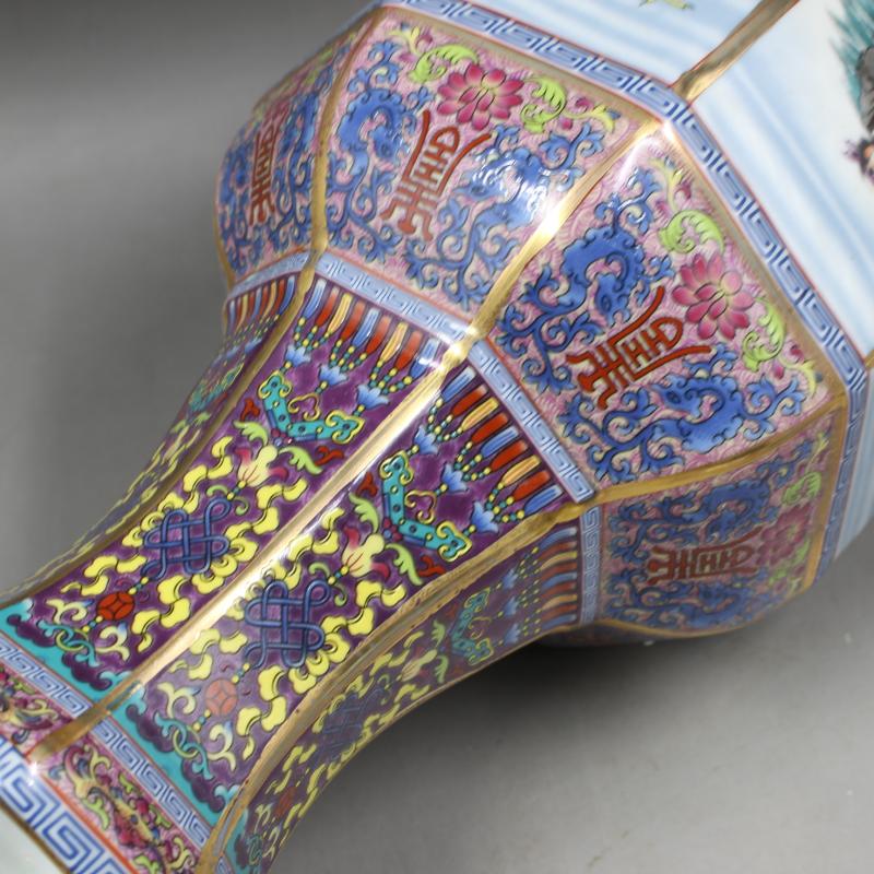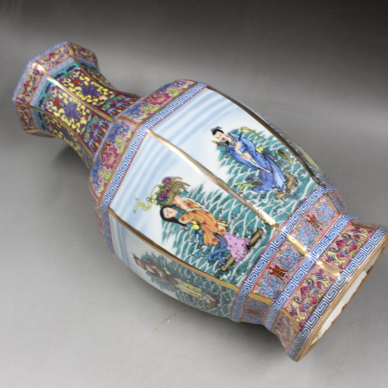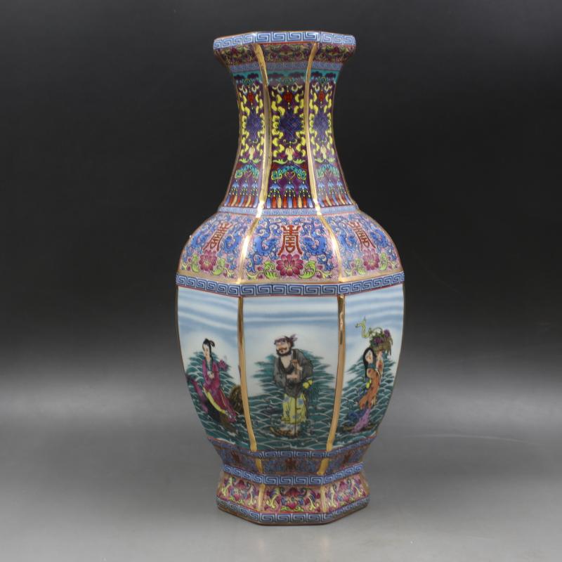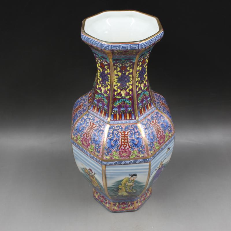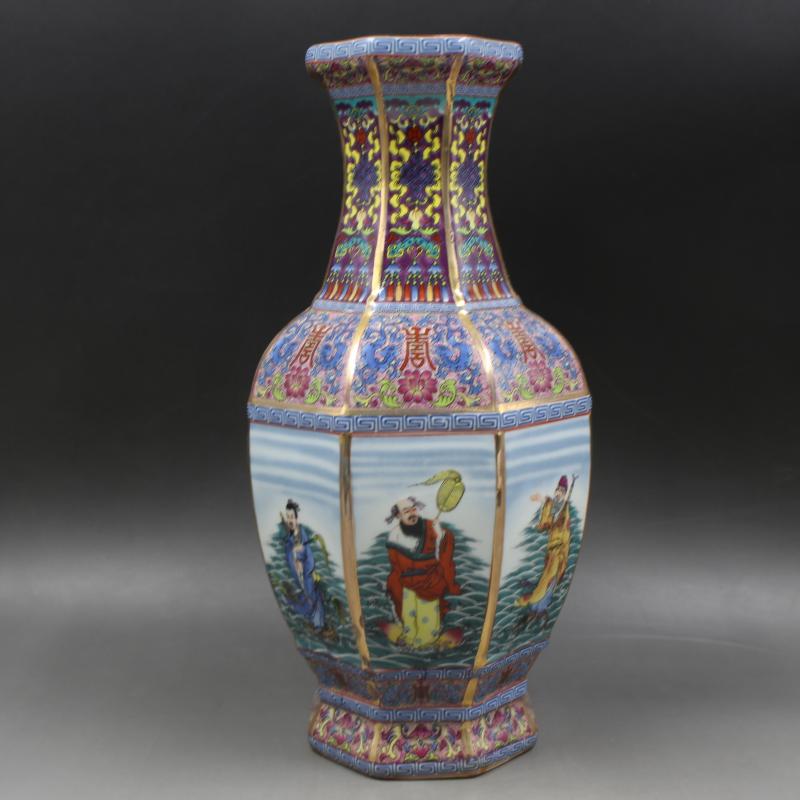 清乾隆年制琺瑯彩八仙人物八方瓶 精品老貨擺件收藏瓷器 古董古玩1入