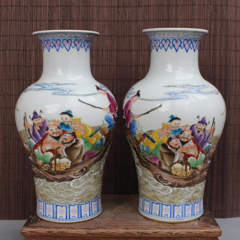 清乾隆粉彩人物八仙過海觀音瓶 全手工老貨瓷器擺件 古董古玩收藏1入
