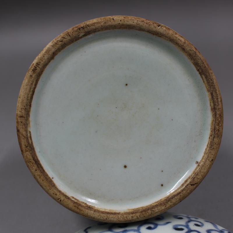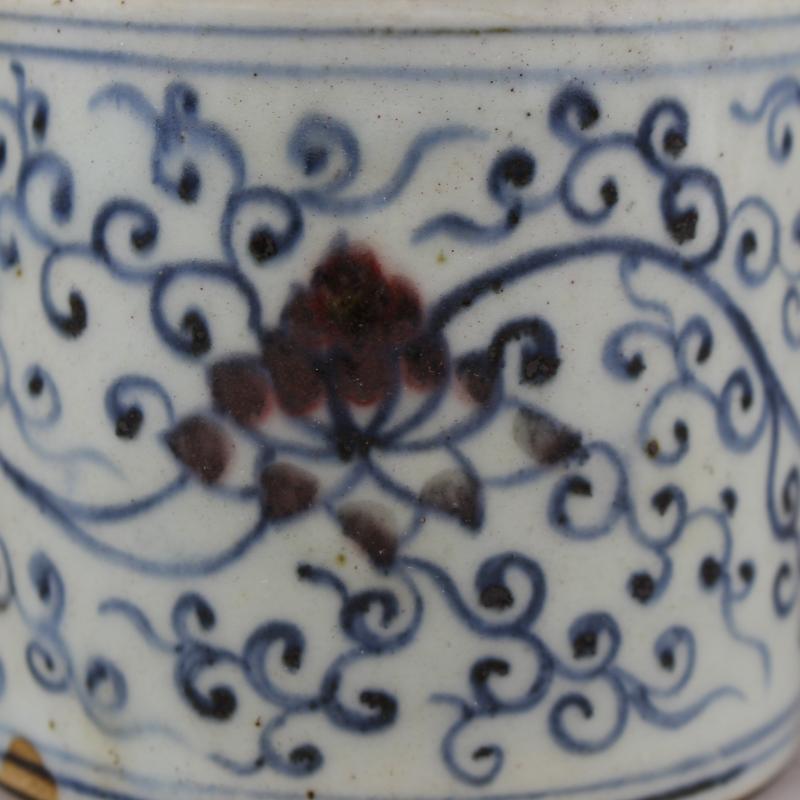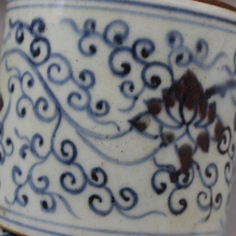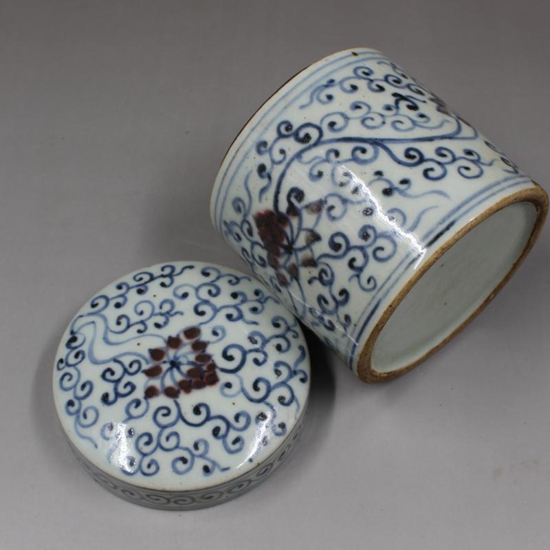 清晚期青花釉里紅纏枝蓮紋茶葉罐老貨擺件手工仿古瓷器古董古玩1入