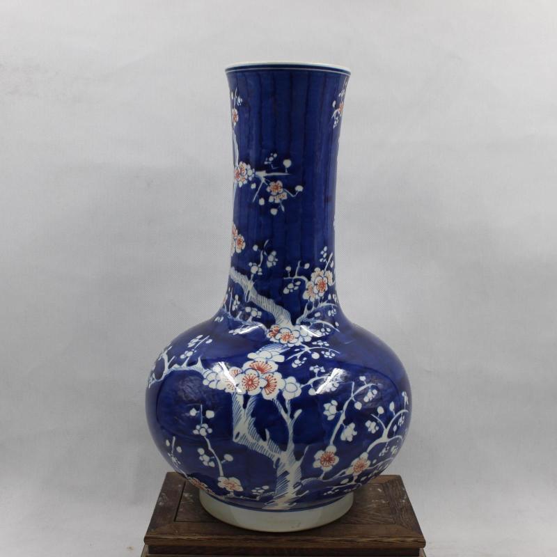特價清康熙青花冰梅紋長頸瓶全手工仿古擺件裝飾瓷器古董古玩收藏1入