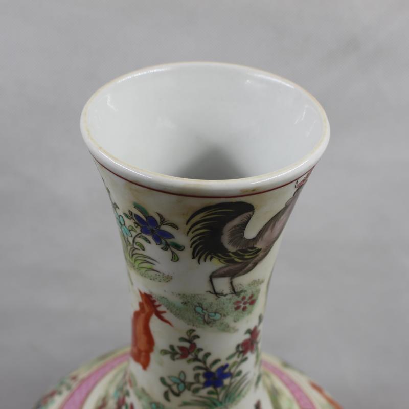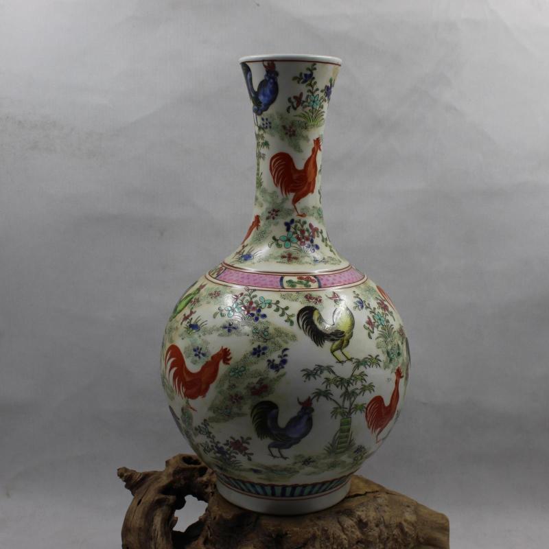 清康熙年制粉彩公雞紋賞瓶瓶 家居仿古瓷器擺件 古董古玩收藏老貨1入
