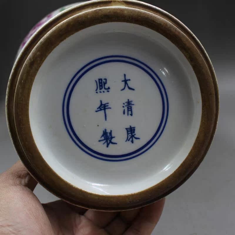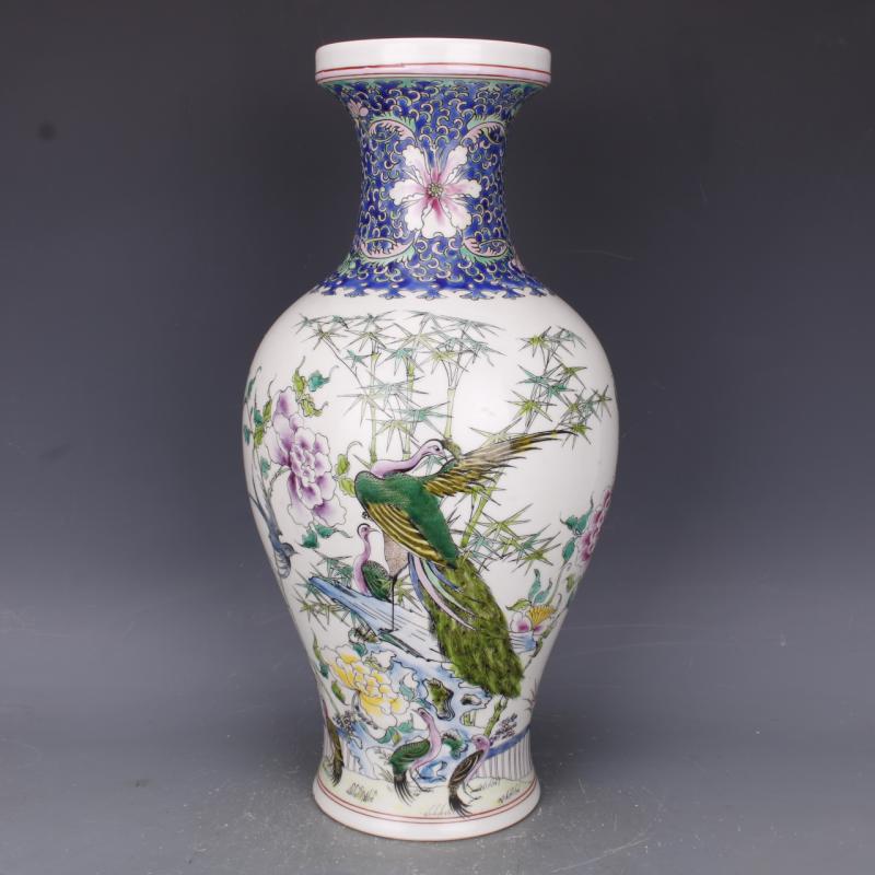 清康熙年制粉彩花鳥觀音花瓶 仿古瓷器家居擺件收藏 手繪古董古玩1入