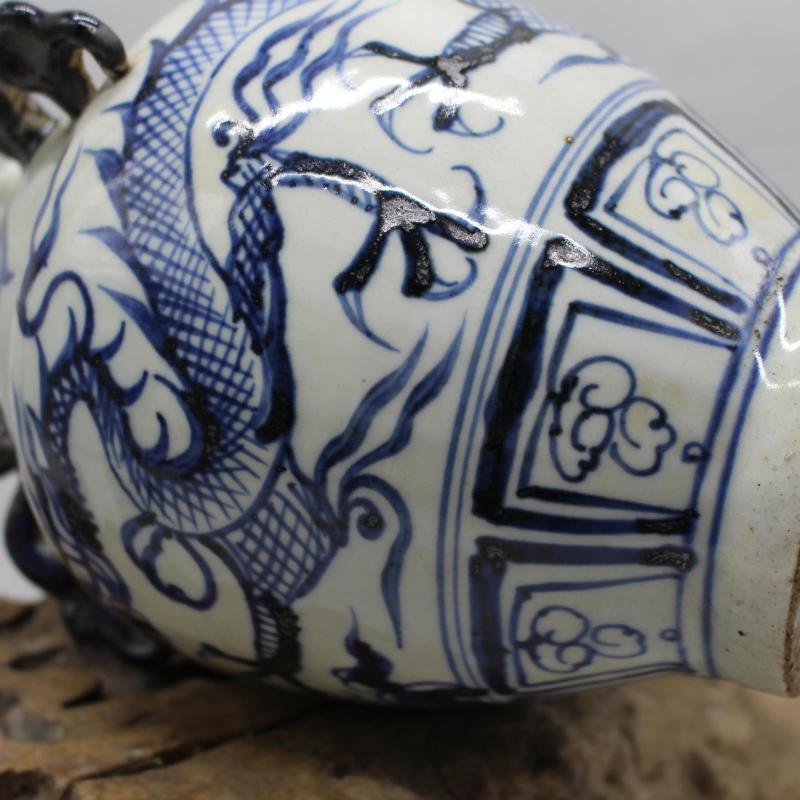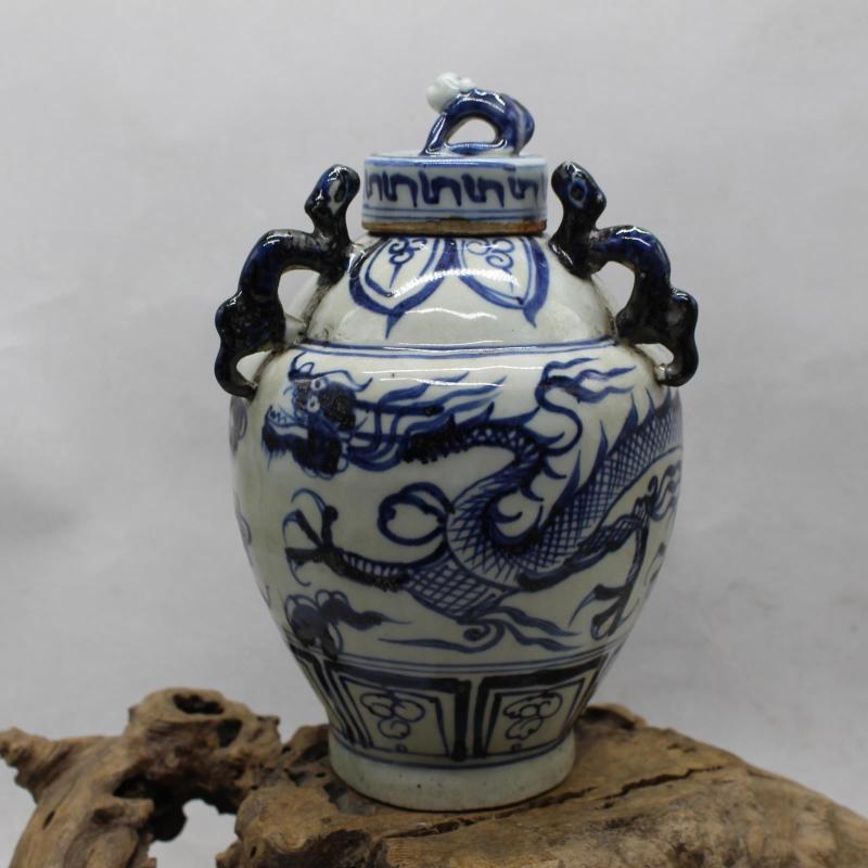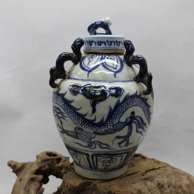 元青花云龍紋龍首狗頭罐 全手工高仿古瓷器 古董古玩收藏擺件老貨1入