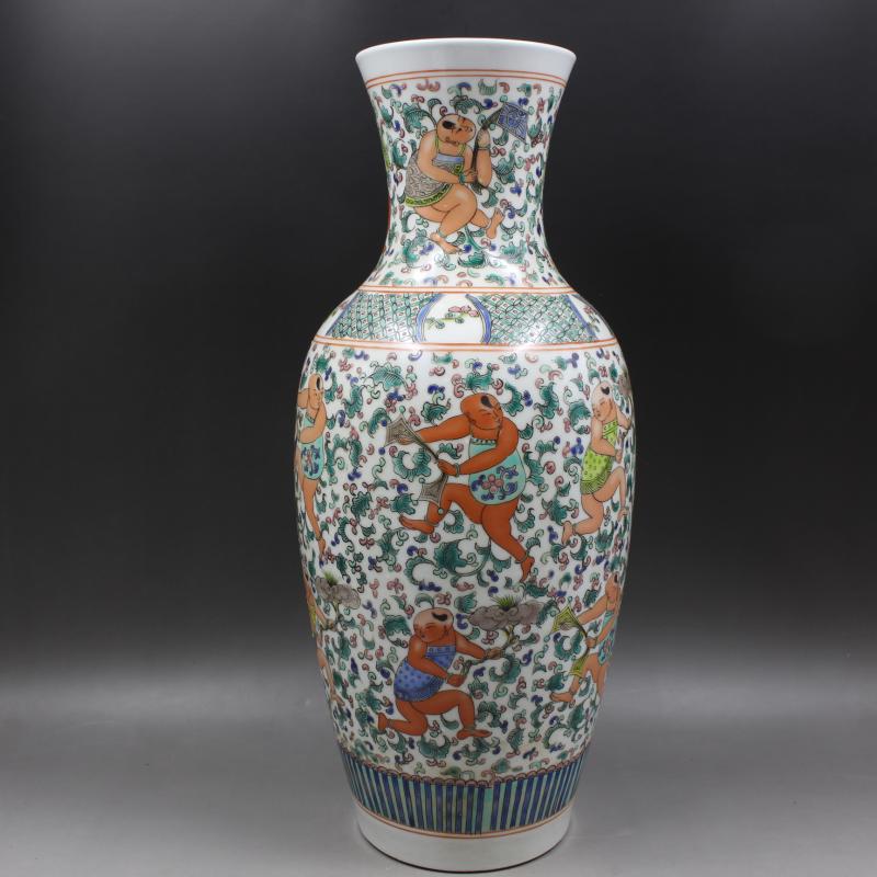 清康熙年制粉彩人物觀音花瓶 仿古瓷器家居擺件收藏 手繪古董古玩1入
