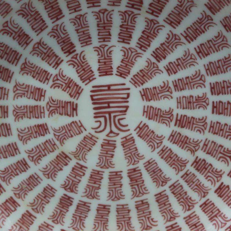 清康熙年制釉里紅百壽碗 民間收藏家居用品仿古瓷器古董古玩擺件1入