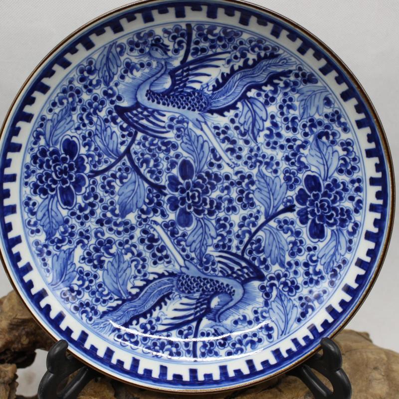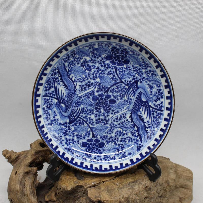 清康熙年制青花鳳戲牡丹紋盤 全手工仿古瓷器收藏擺件 古董古玩1入