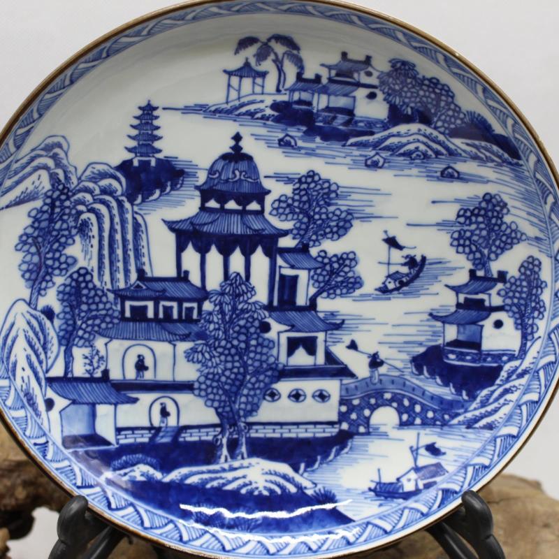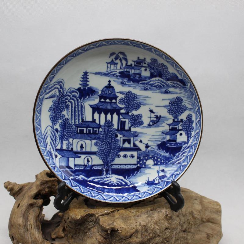 清康熙年制青花人物山水盤 全手工仿古瓷器收藏擺件 古董古玩1入