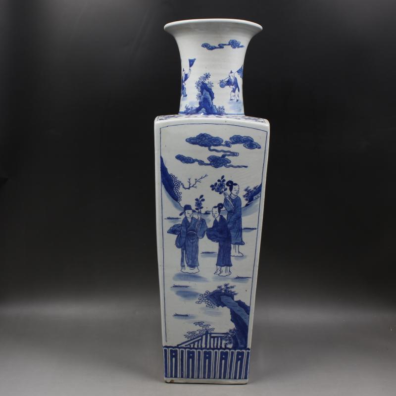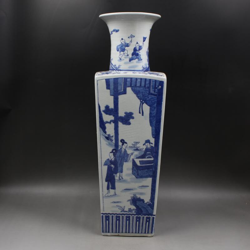 清康熙年制青花人物故事天圓地方花瓶仿古瓷器家居擺件古董古玩1入