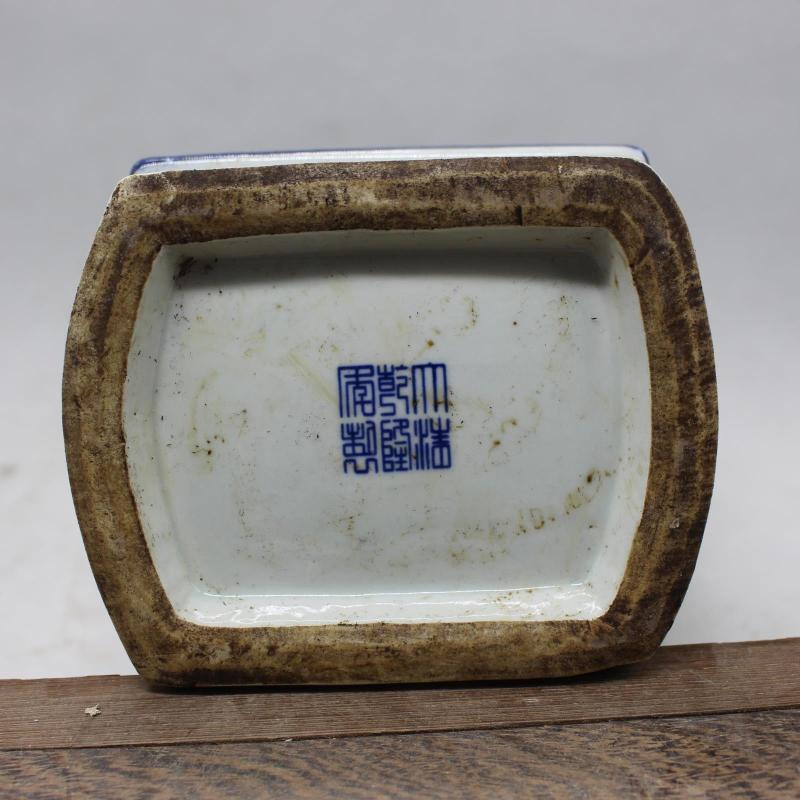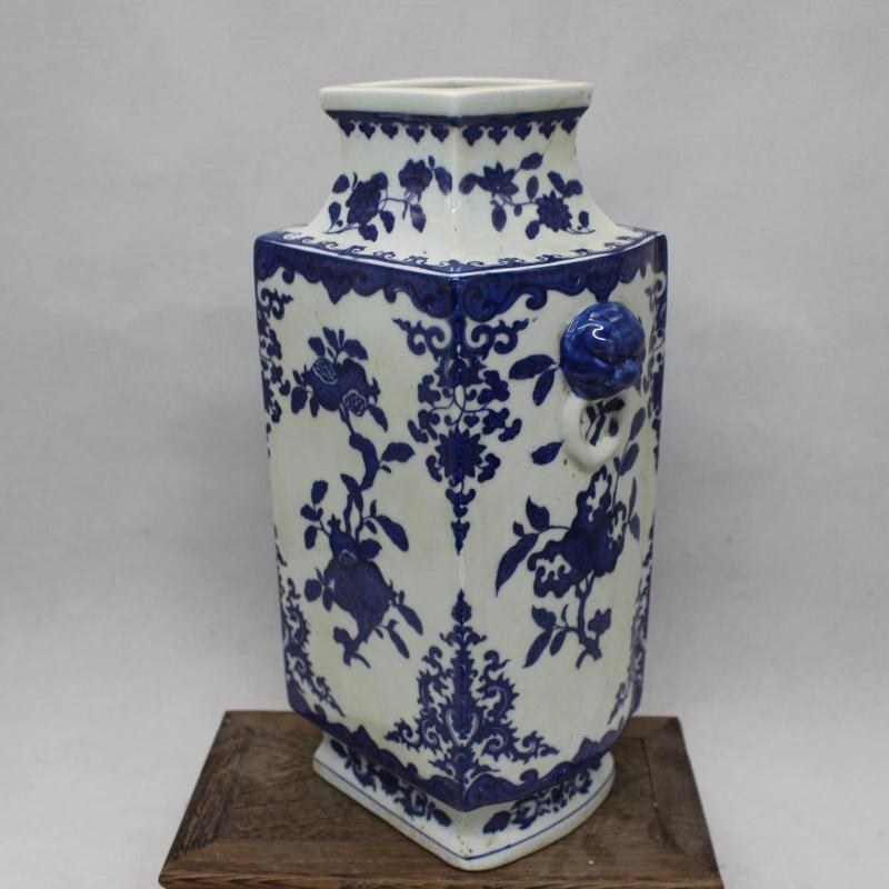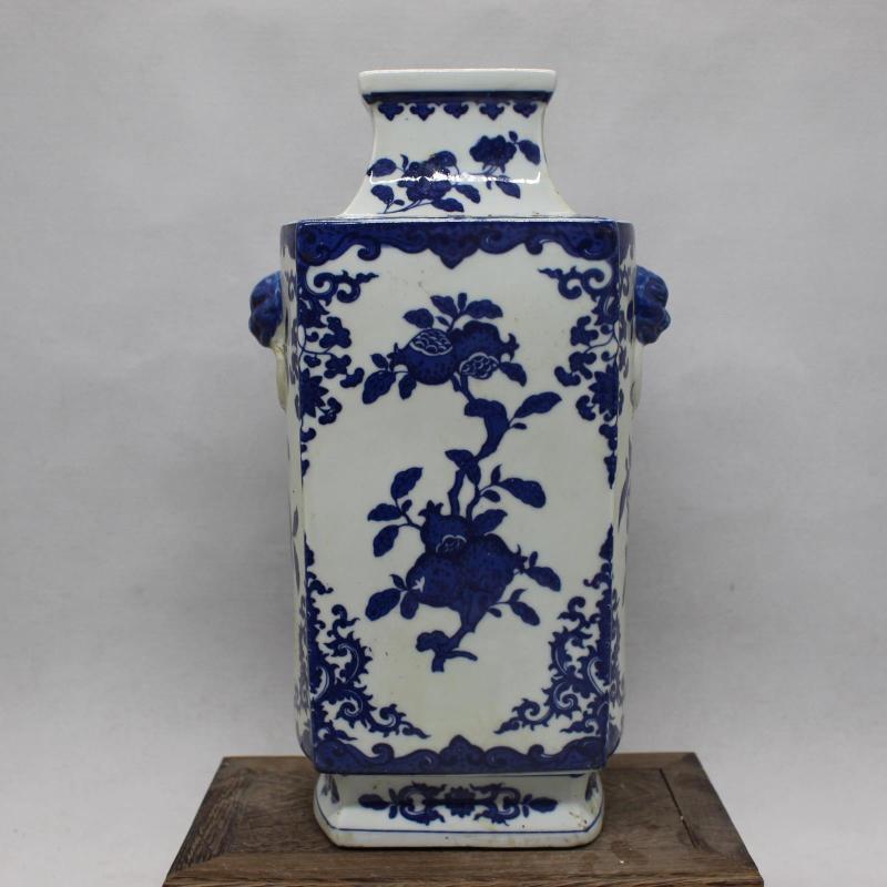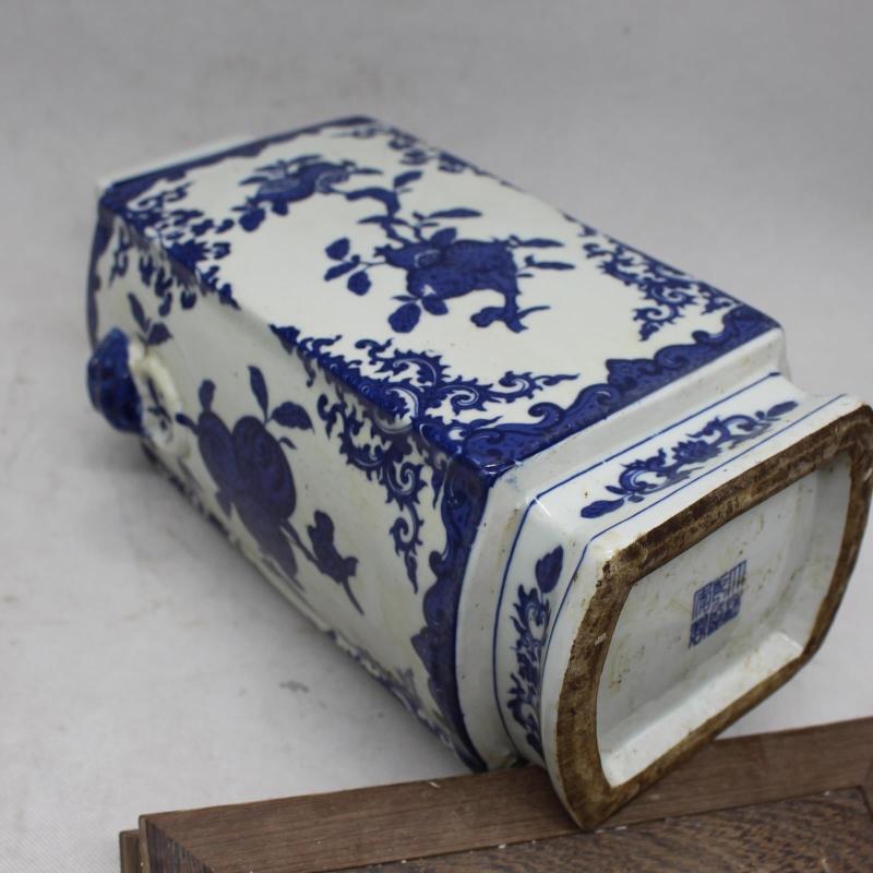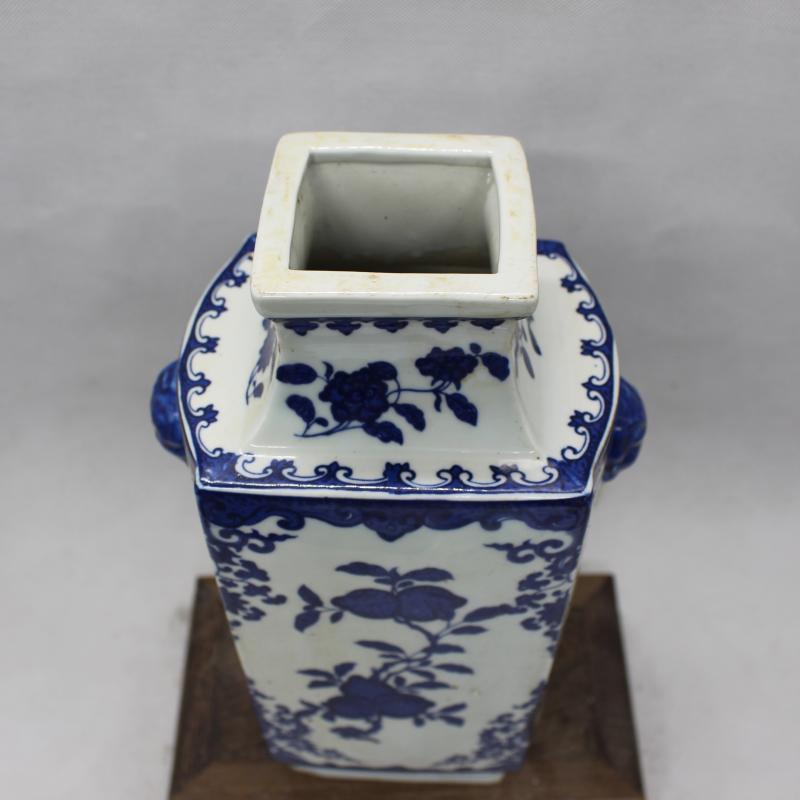 清乾隆年制青花折枝福壽三多四方瓶 仿古瓷器擺件 古董古玩收藏1入
