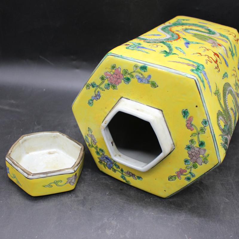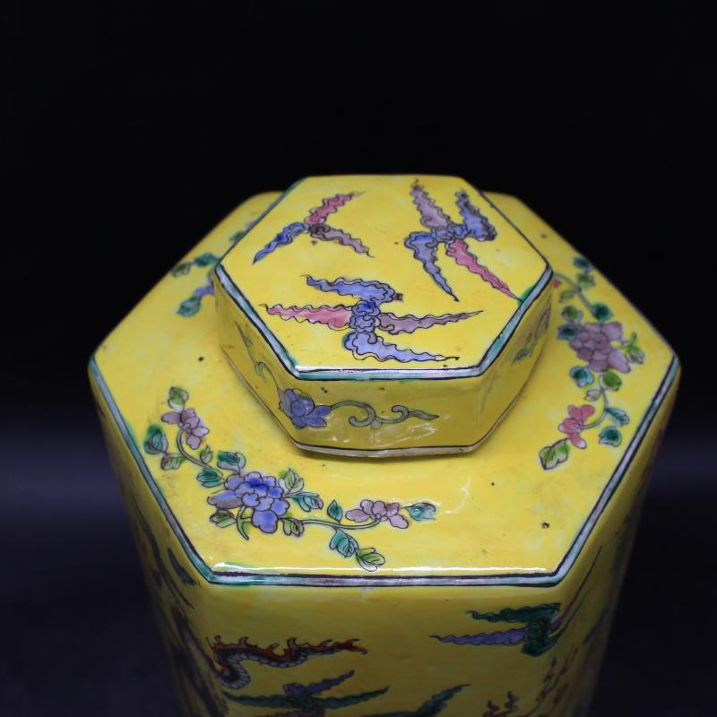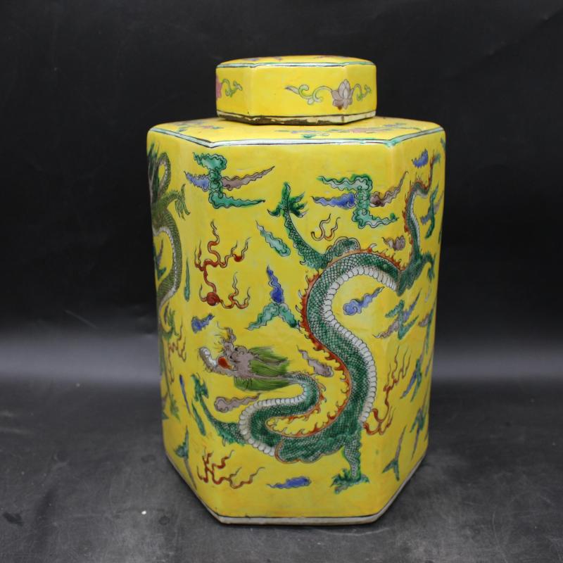 清康熙年制粉彩云龍紋茶葉罐 民間擺件收藏 仿古瓷器 古董古玩1入