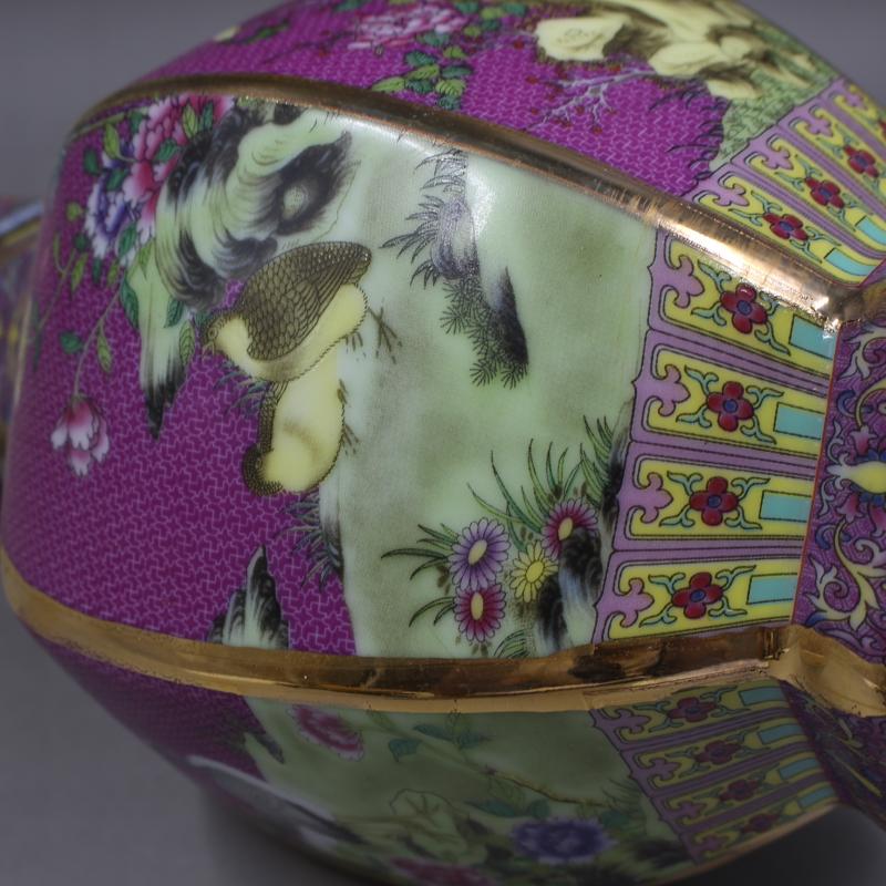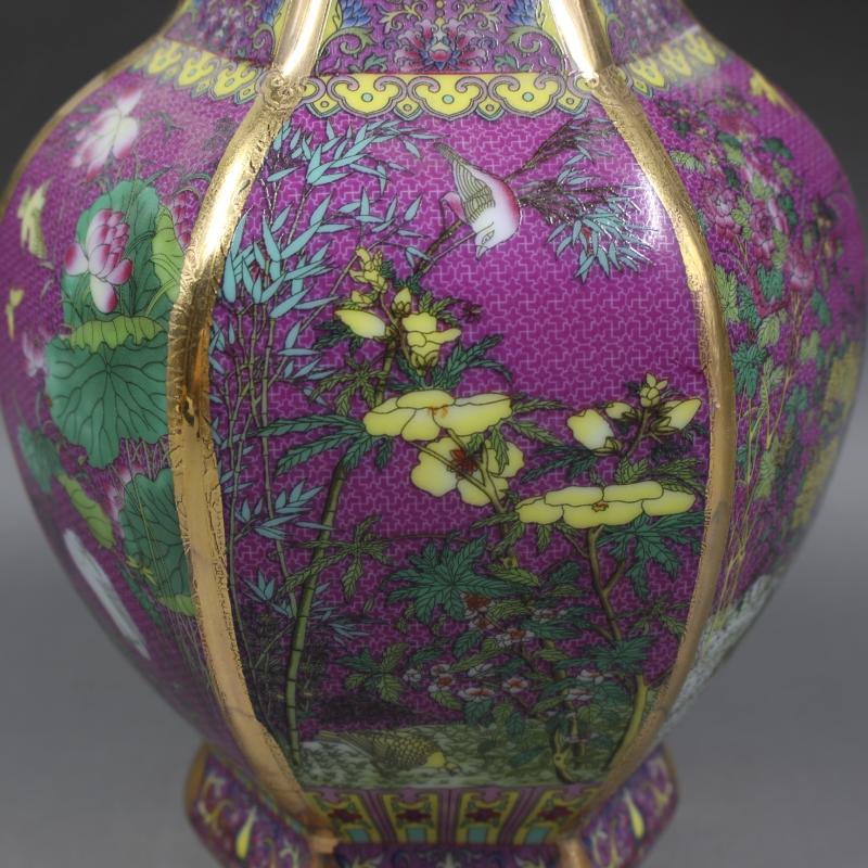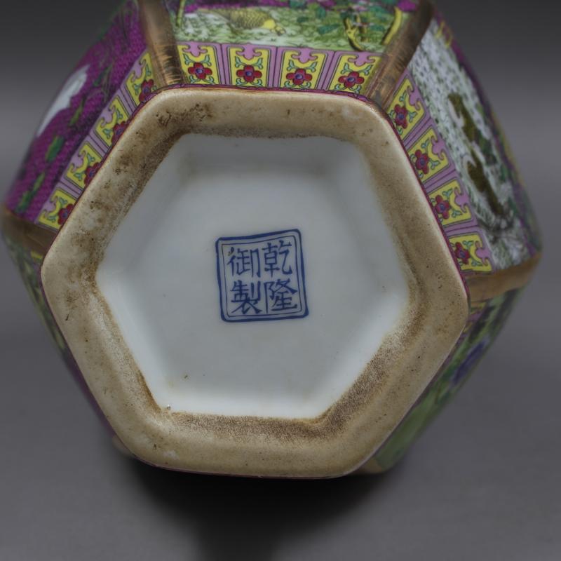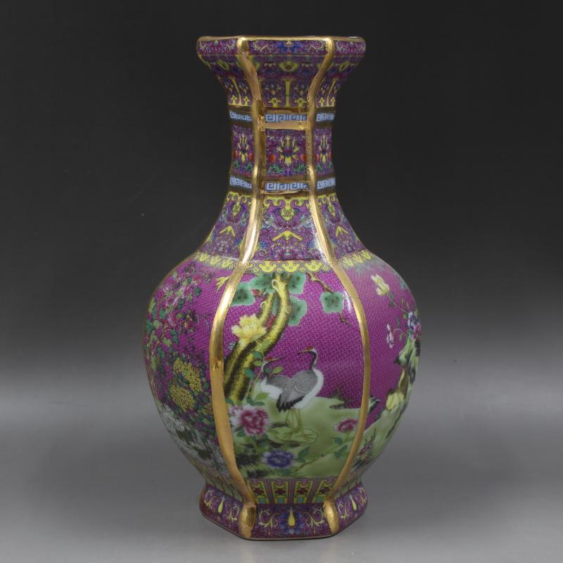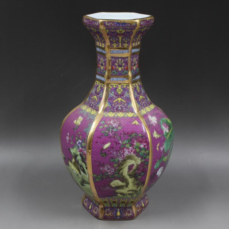 清乾隆琺瑯彩描金花鳥六方賞瓶家居瓷器擺件仿古瓷器收藏古董古玩1入