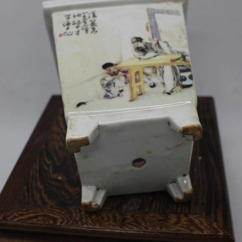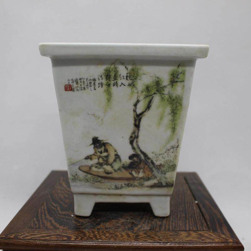 民國墨彩人物故事四方花盆 老貨舊貨古玩瓷器家居擺件收藏 盆景盆1入