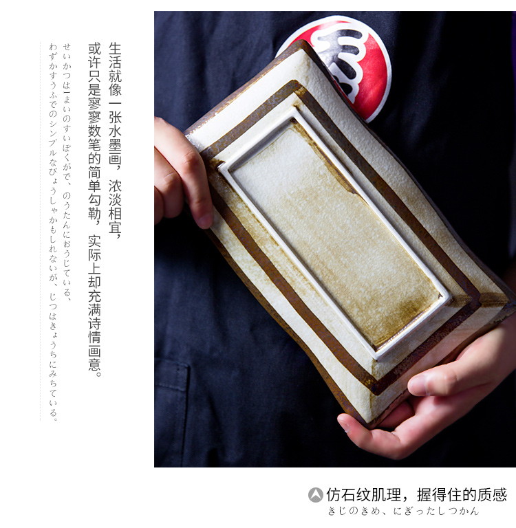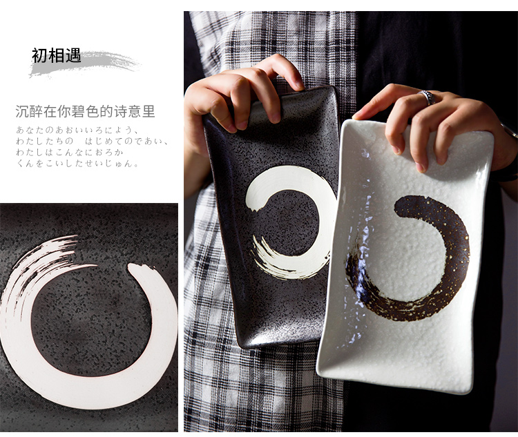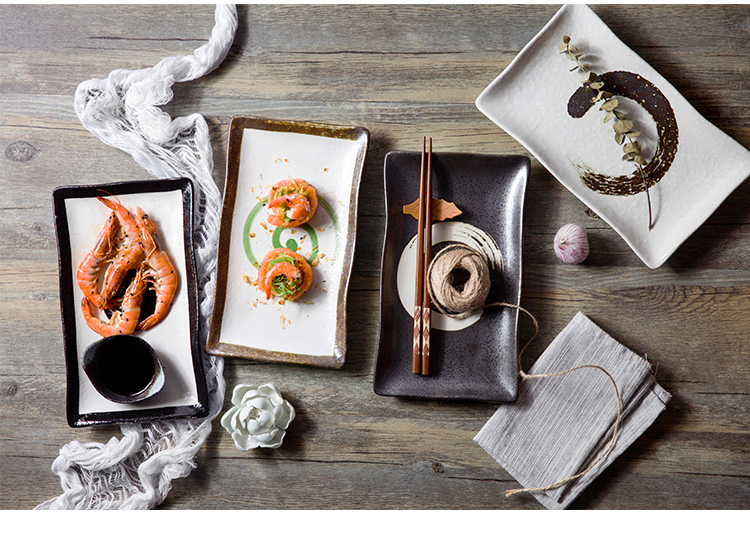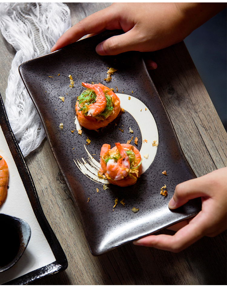 創意個性日式手繪陶瓷特色餐廳餐具擺盤菜盤長方盤壽司盤家用盤子1入