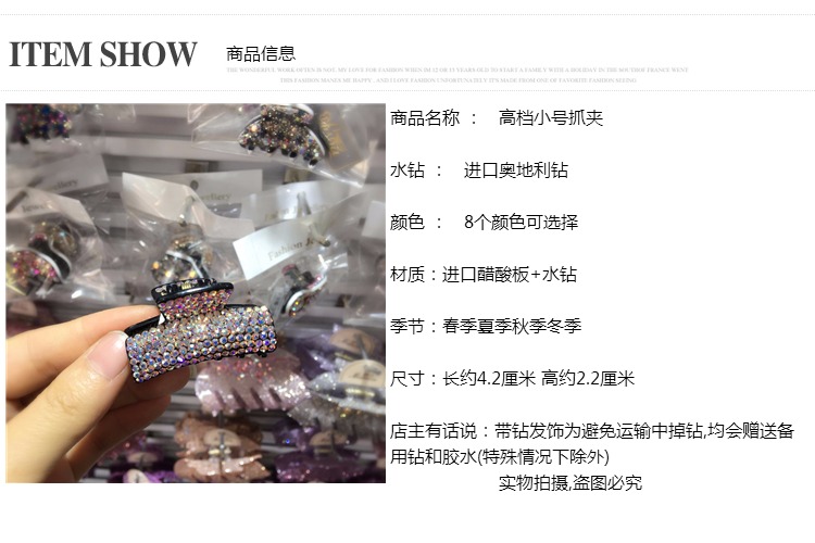 韓國正品發飾商場專柜發夾滿鉆奧登水晶小號抓夾頂夾劉海夾邊夾子1入