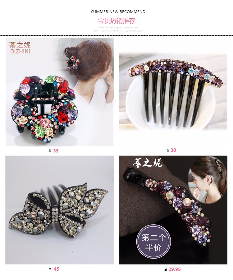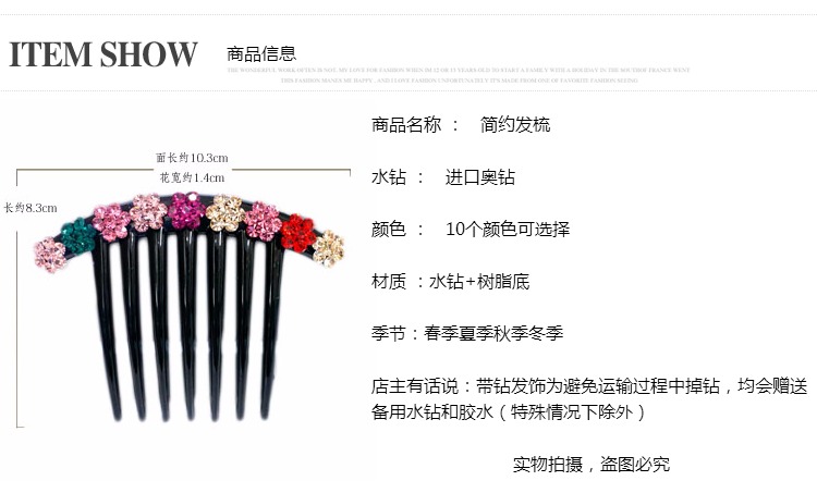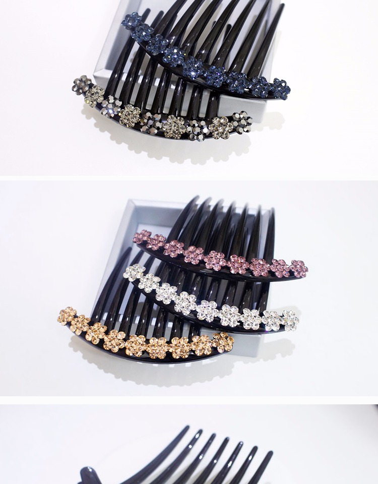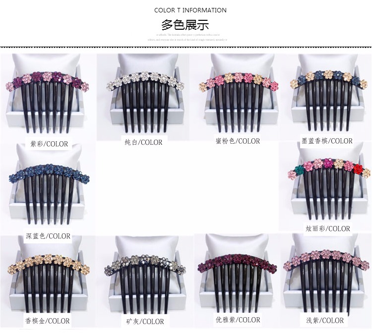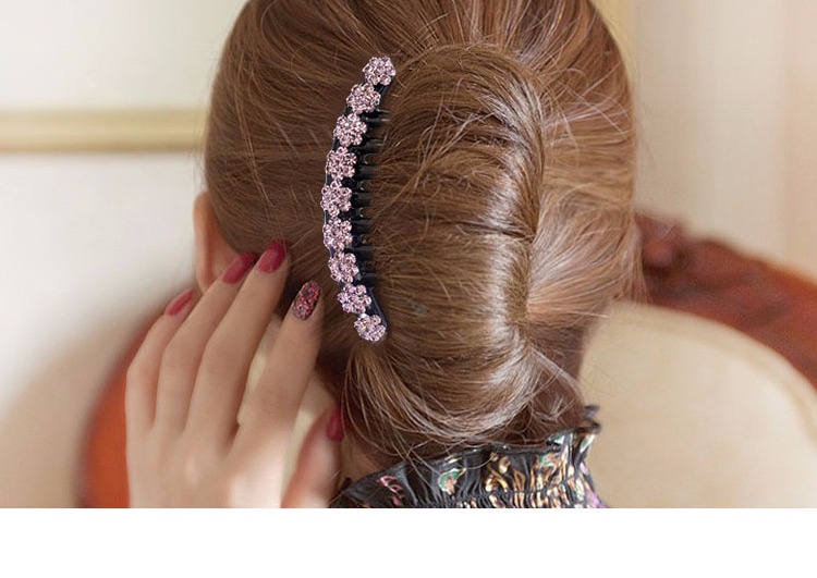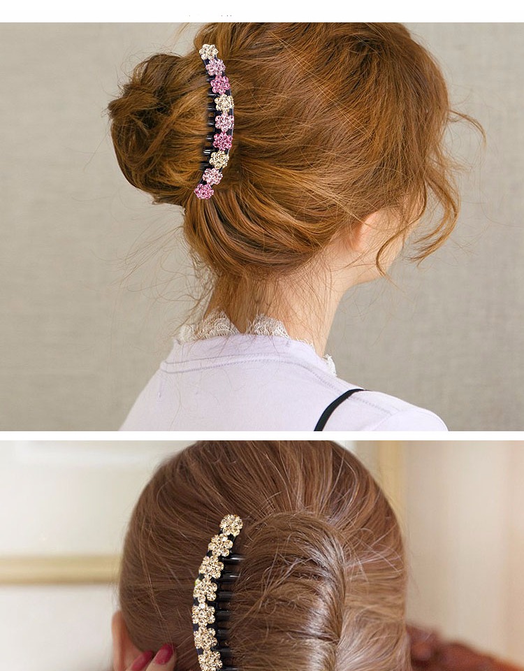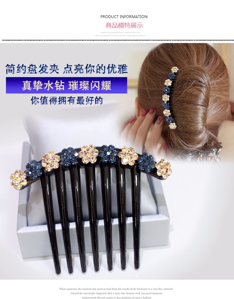 韓版水鉆發飾韓國小花盤發夾發梳插梳馬尾發卡頭飾花苞頭夾子1入