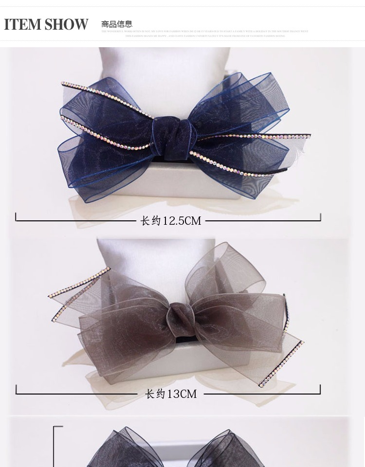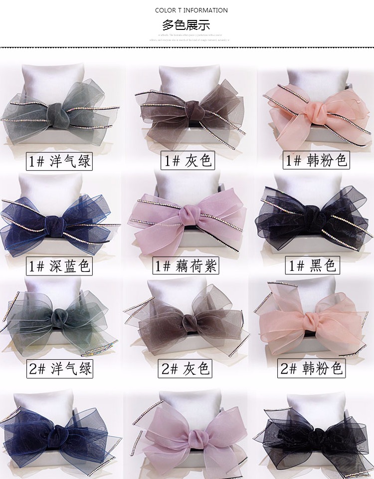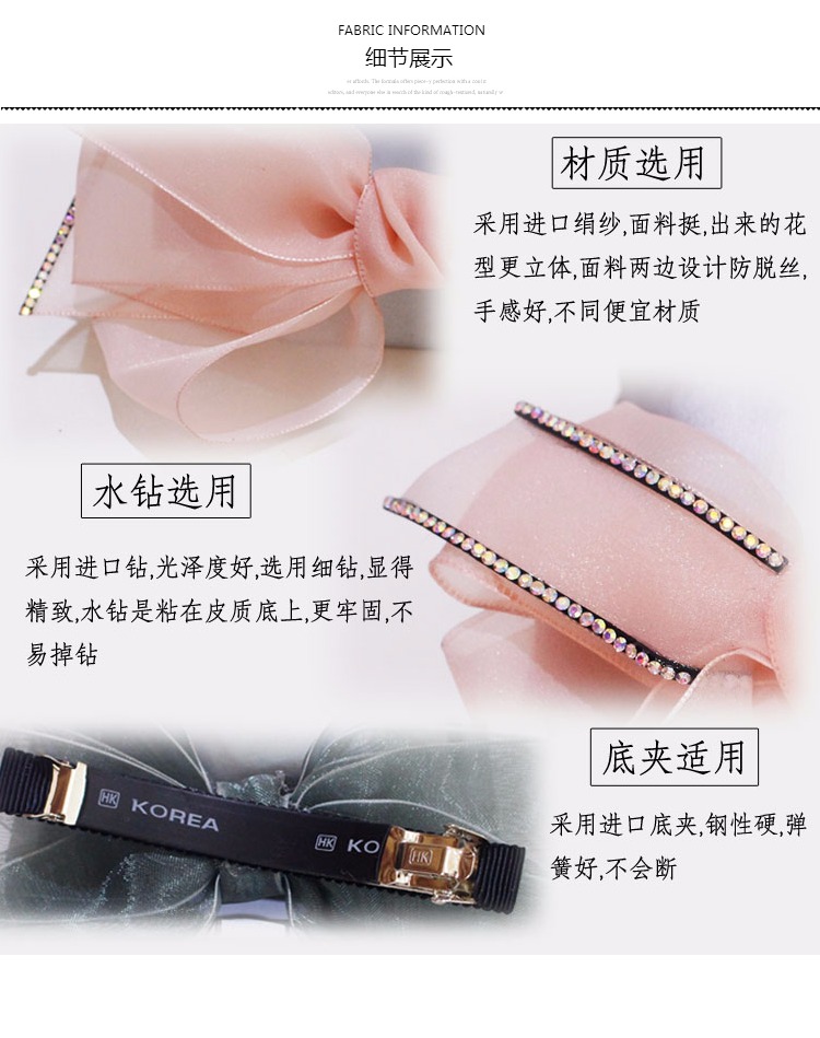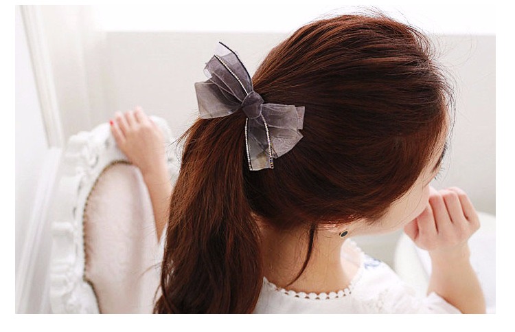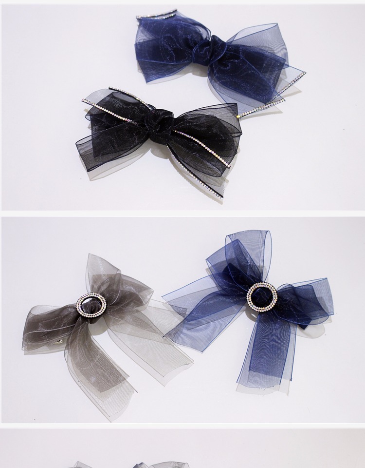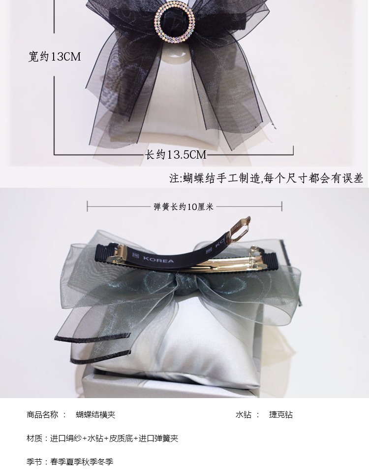 韓國發飾品 韓版水鉆蝴蝶結橫夾絹紗彈簧夾大號馬尾夾發夾頭飾品1入