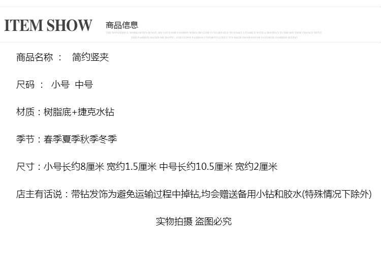 韓國夏季正品發飾捷克水鉆氣質香蕉夾豎夾馬尾扣頭飾日韓頭飾1入