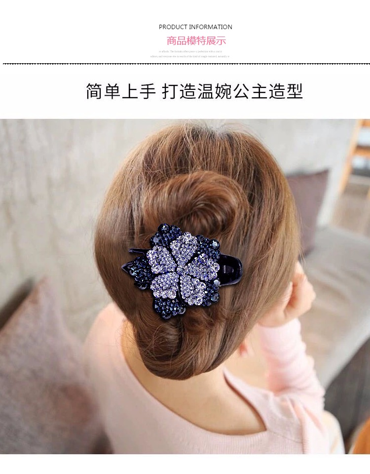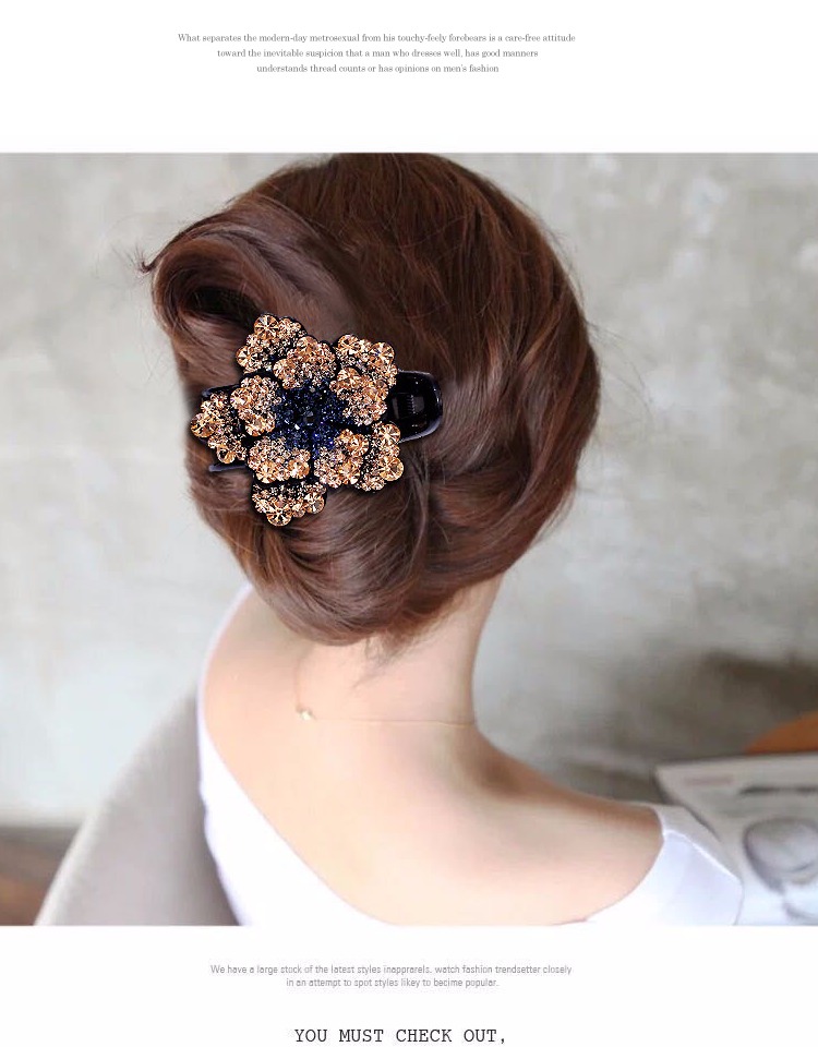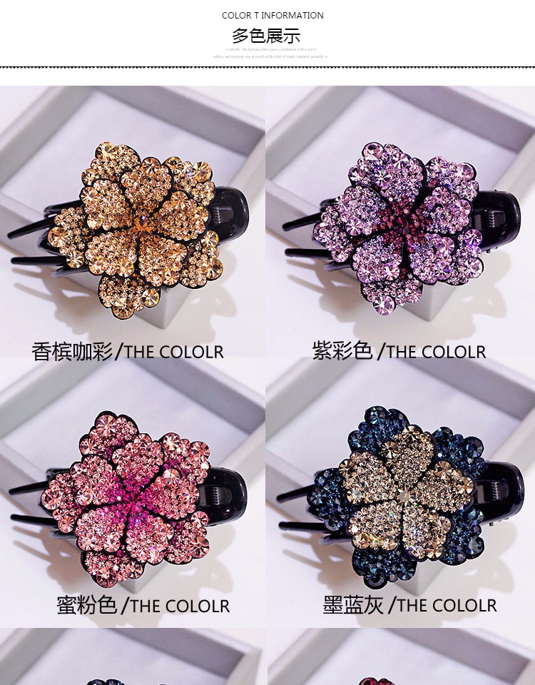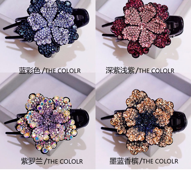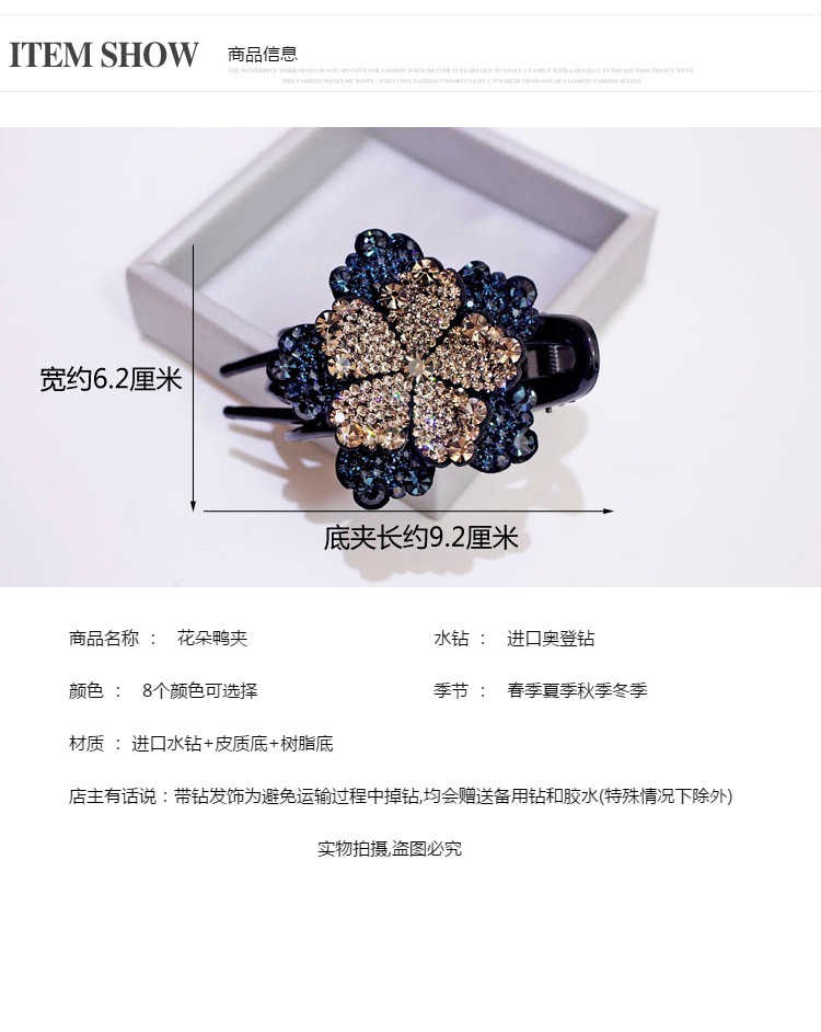 韓版新品水鉆花朵鴨嘴夾成人盤發抓夾韓國優雅發夾發卡子頭飾飾品1入