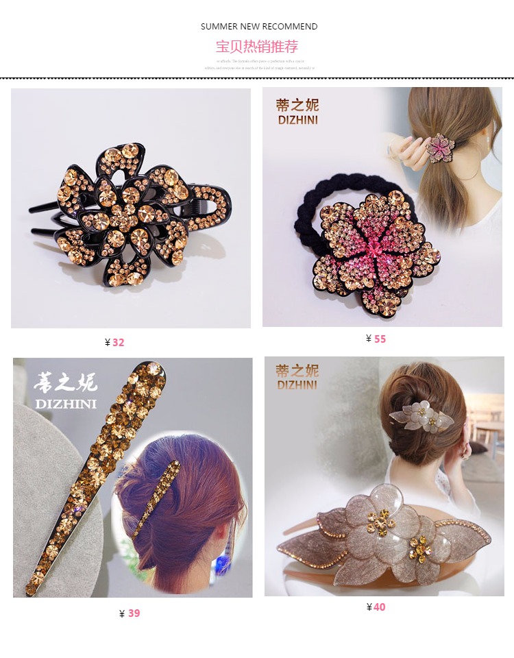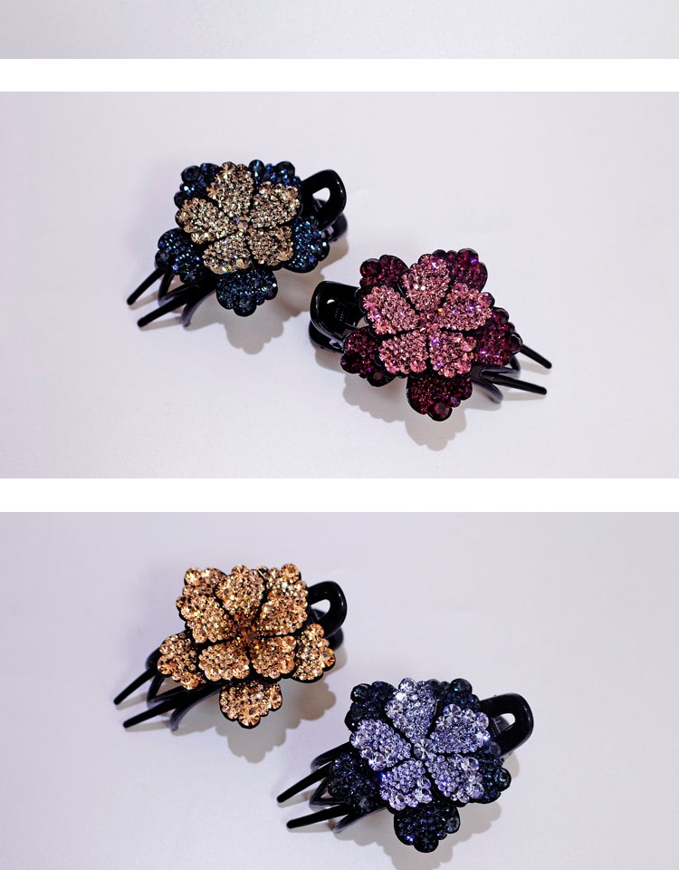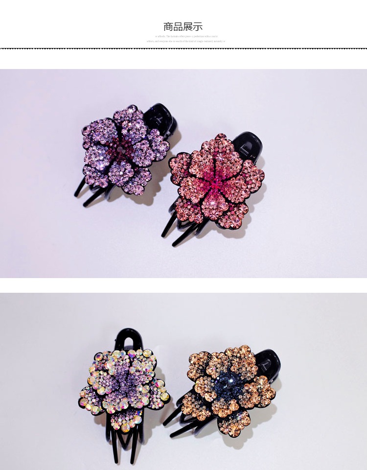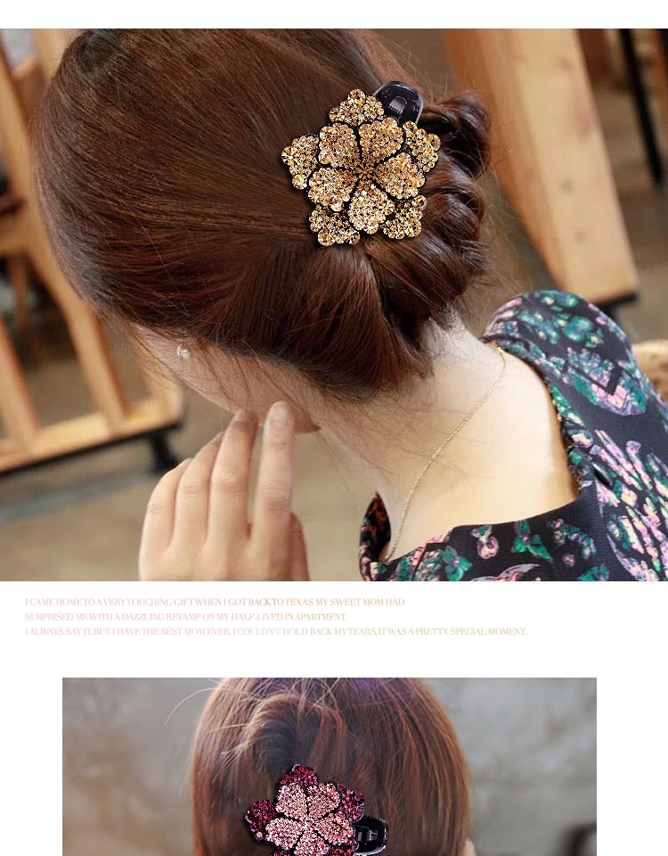 韓版新品水鉆花朵鴨嘴夾成人盤發抓夾韓國優雅發夾發卡子頭飾飾品1入