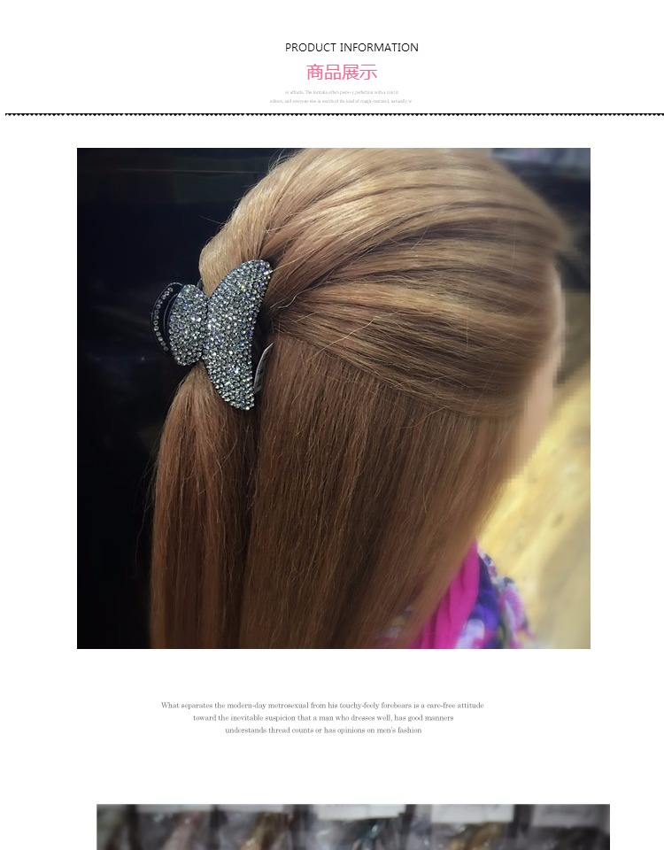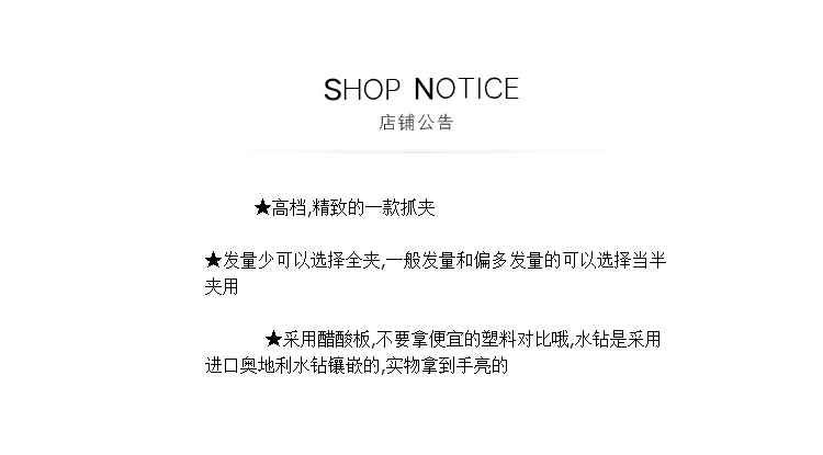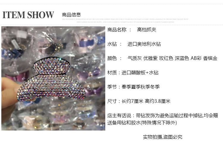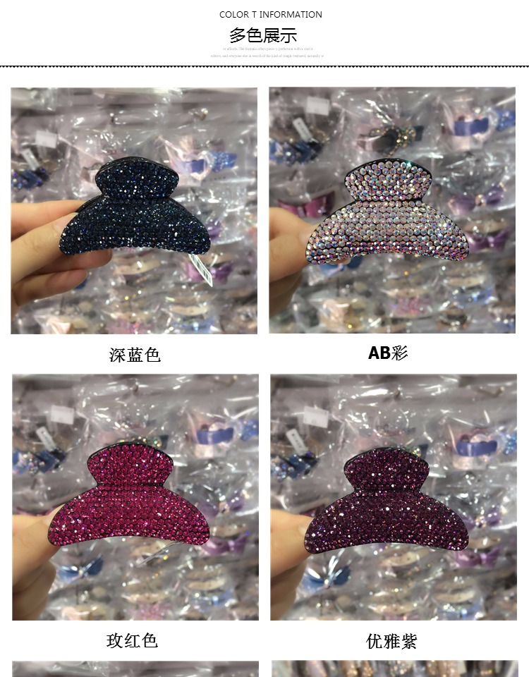 韓國高檔發飾品 進口奧地利水鉆抓夾盤中號滿鉆發抓韓版馬尾發夾1入