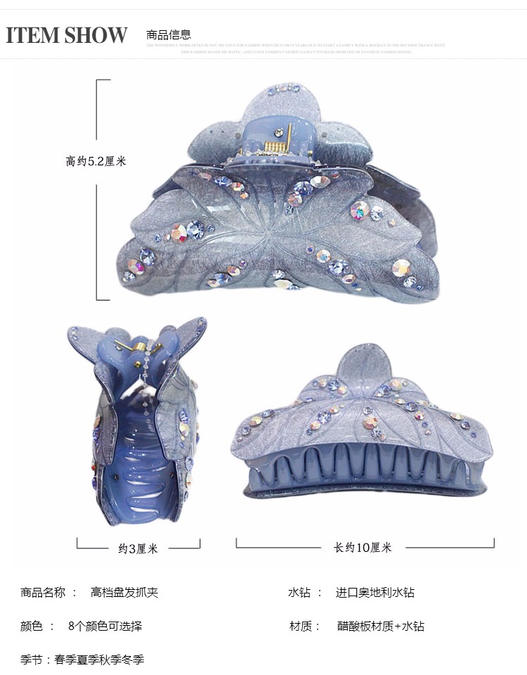 韓國夏季盤發夾子飾品日韓進口水鉆亞克力大號抓夾發抓馬尾夾發卡1入
